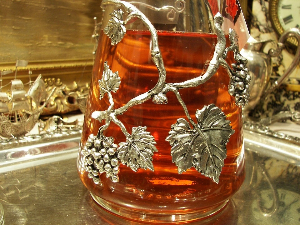 Предлагаю вам купить красивый универсальный графин, думаю, он одинаково подойдет и для ликеров, и для водок, и для ликеров, и для вина. Графин красиво декорирован мотивом виноградной лозы, на 95% олово. Пробка очень плотная. Хорошая вещь. Изделие производится в Португалии компанией, специализирующейся на этом виде изделий. Цена немалая, но Аллегро берет на себя более 10% от стоимости плюс НДС и налог. К сожалению, мы не имеем на это влияния.