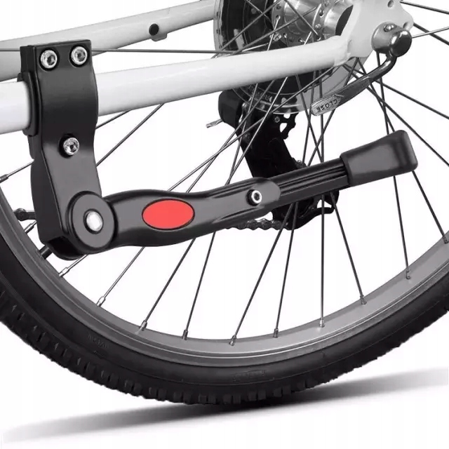 Нога имеет возможность регулировать высоту, благодаря которой она адаптируется к любому велосипеде.