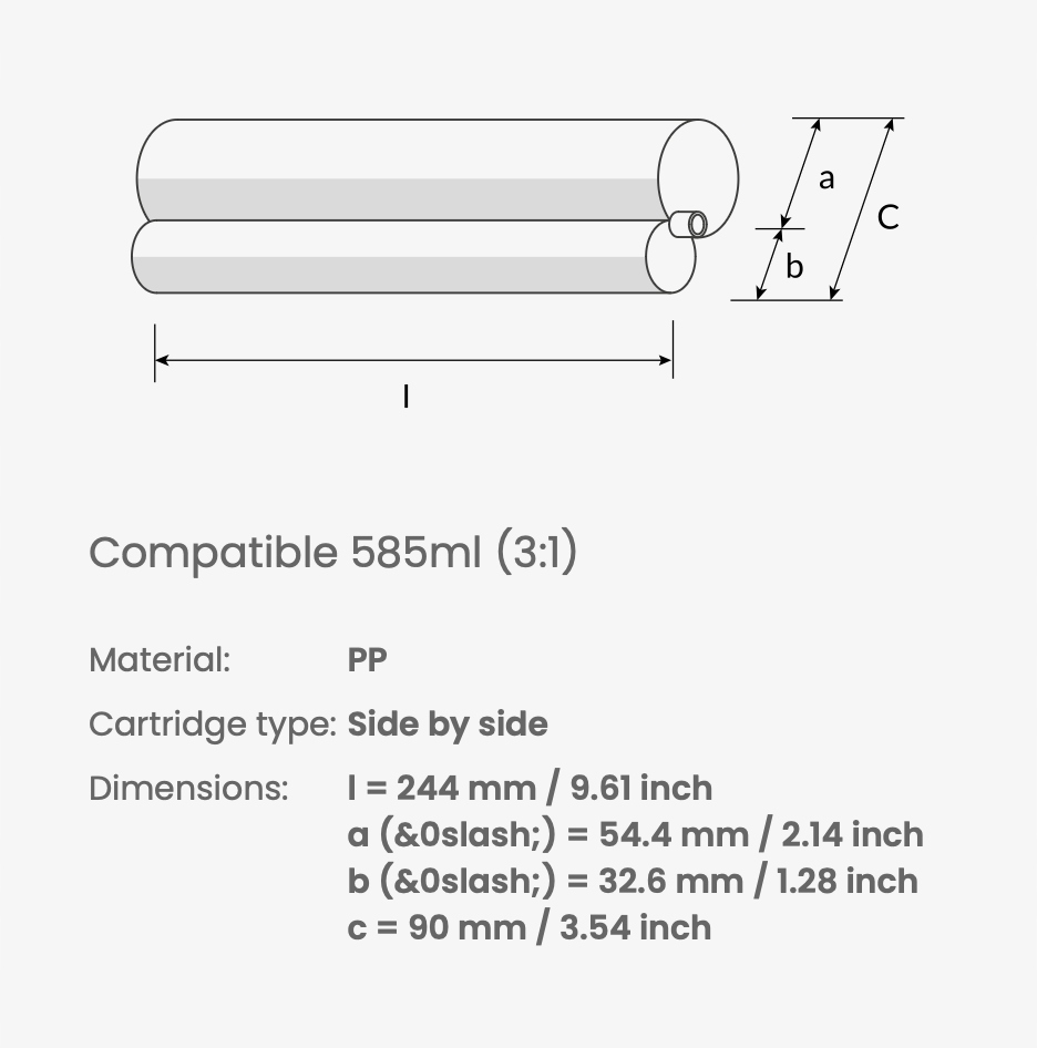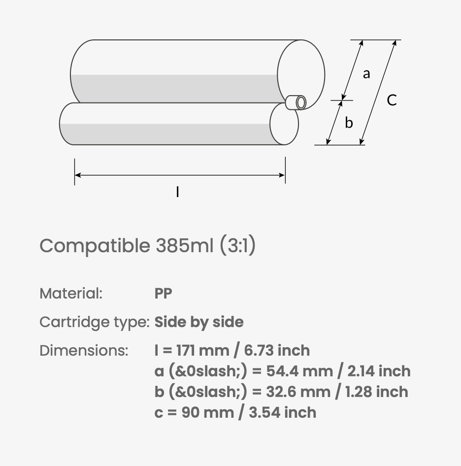 -Двухкомпонентные эпоксидные клеи емкостью 385 мл и 585 мл и соотношением смешивания 3:1.