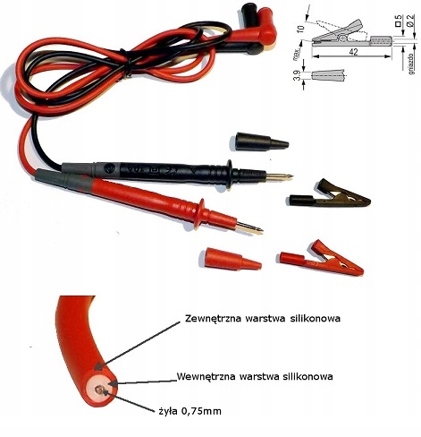 Высококачественные, очень гибкие силиконовые измерительные провода с двойной изоляцией для мультиметров, устойчивые к высоким температурам до 200 °С для непрерывной работы (случайное прикосновение нагретым паяльником при 400 °С не расплавляет изоляцию), не затвердевают на морозе до -50 °С.