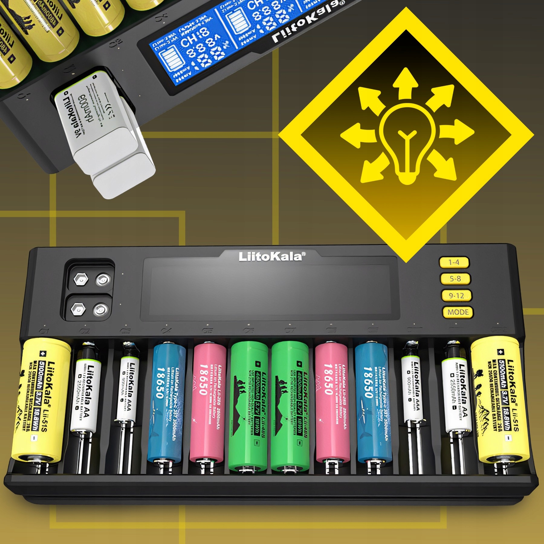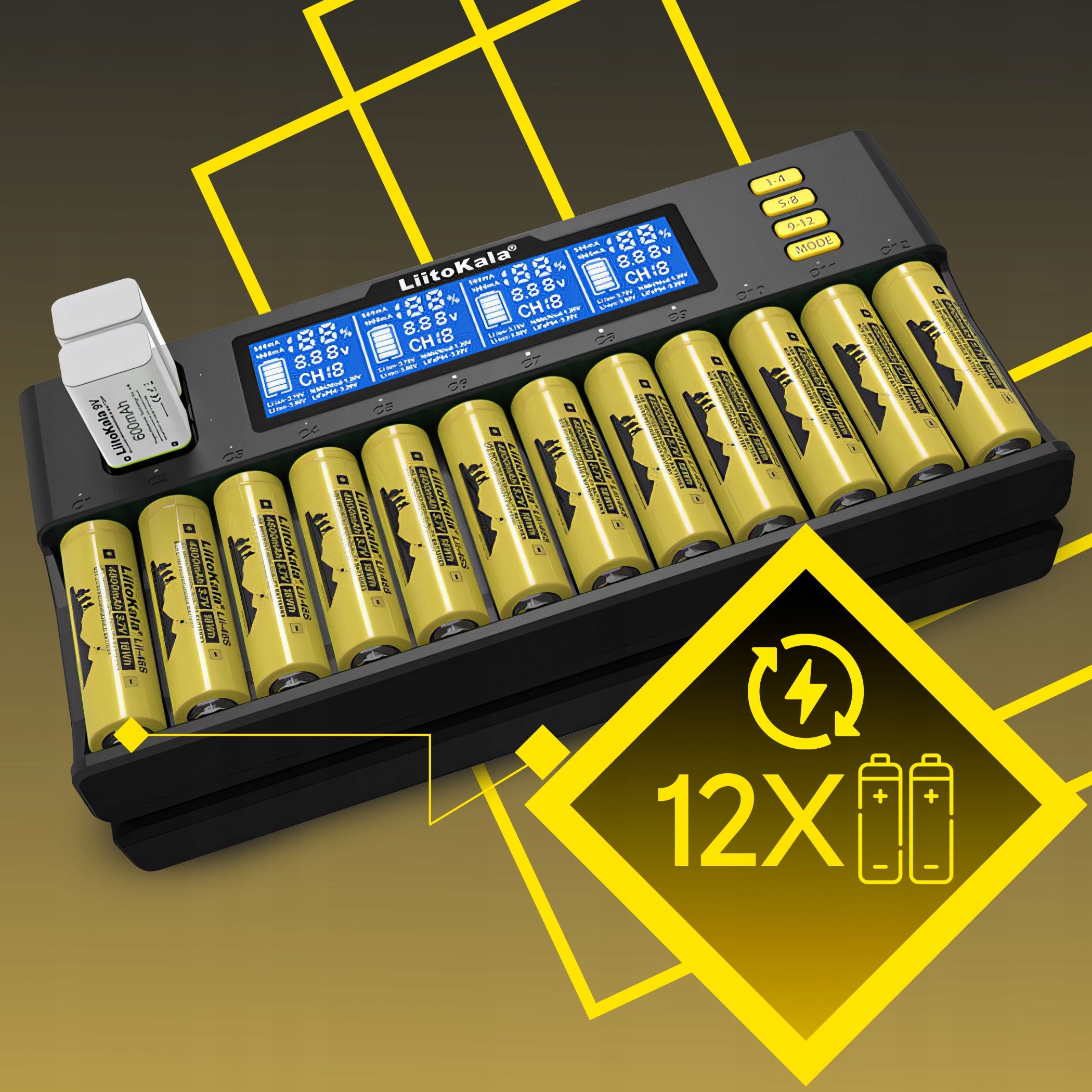 УНИВЕРСАЛЬНОЕ ЗАРЯДНОЕ УСТРОЙСТВО ДЛЯ АККУМУЛЯТОРОВ AA AAA, 12 КАНАЛОВ, ЖК-ДИСПЛЕЙ