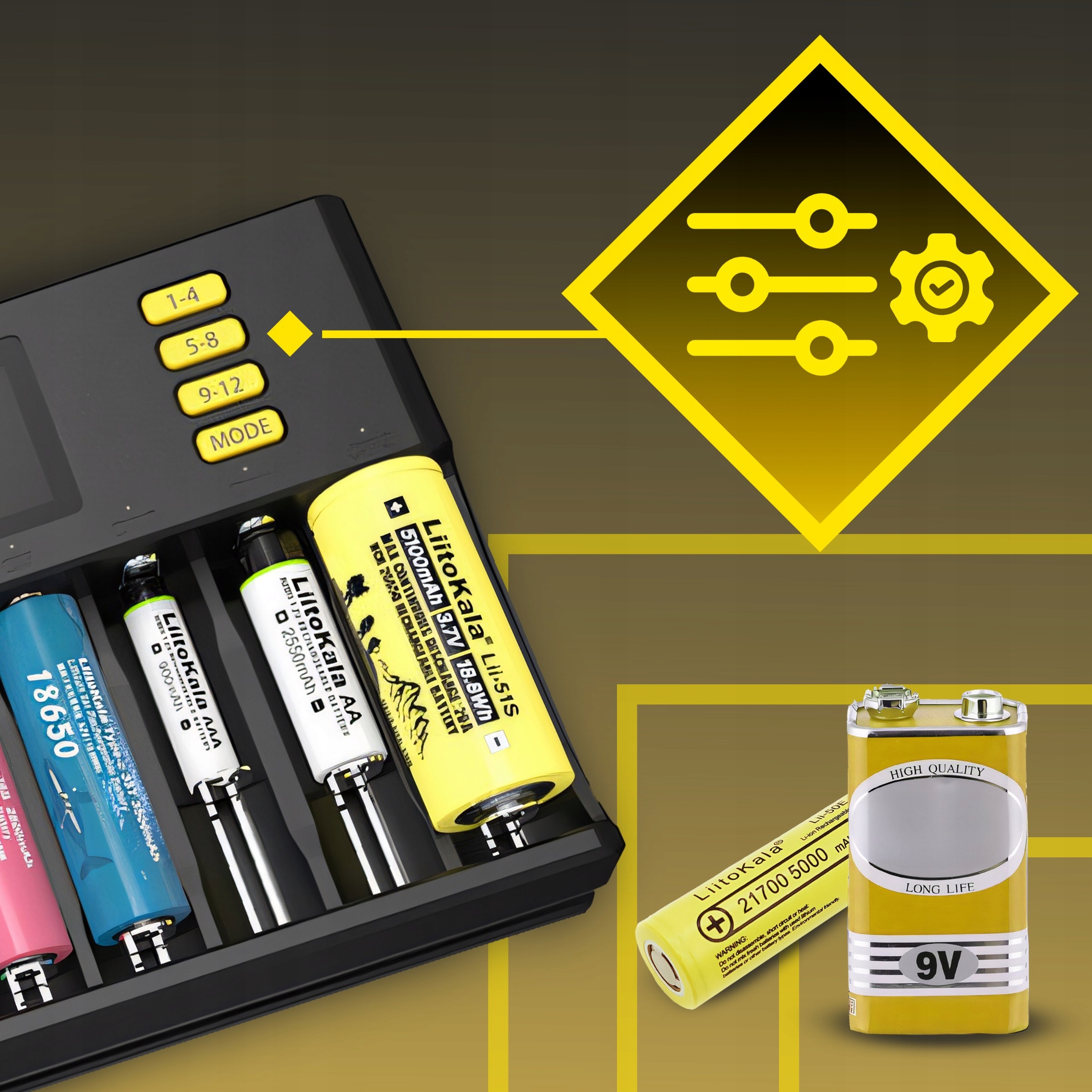 ⭐ 12 КАНАЛОВ ЗАРЯДКИ: Благодаря 12 каналам зарядки устройство позволяет заряжать несколько аккумуляторов одновременно, что повышает удобство и экономит время.