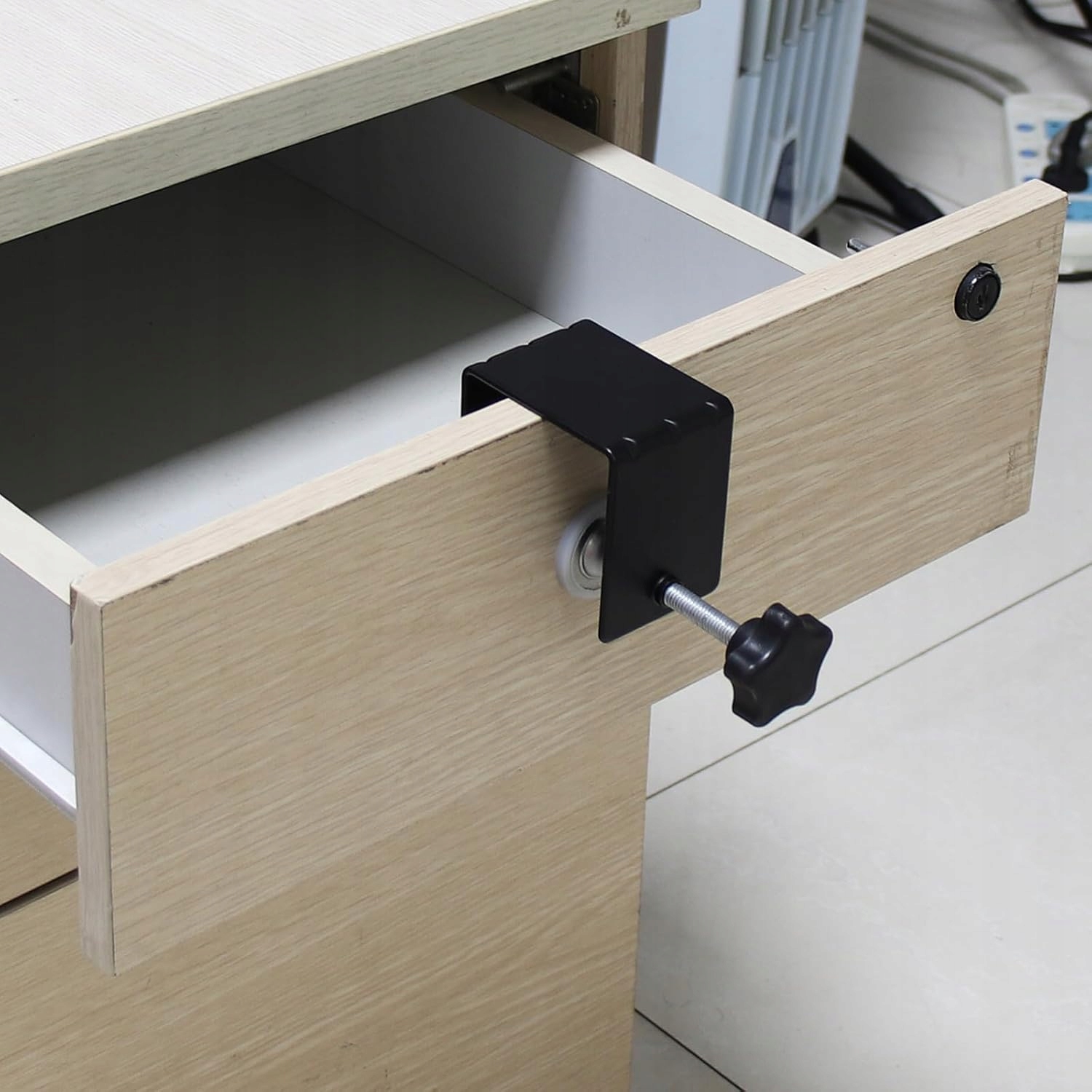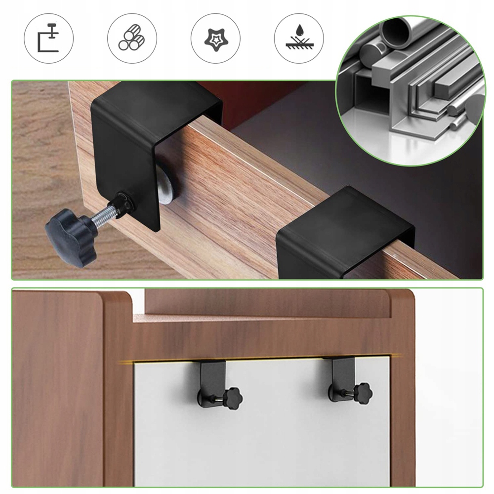 Длина передних кронштейнов ящика может свободно регулировать в диапазоне 0-50 мм. Винты можно повернуть, чтобы адаптировать их к вашим потребностям. Зажидок для стола можно использовать для большинства деревянных продуктов.