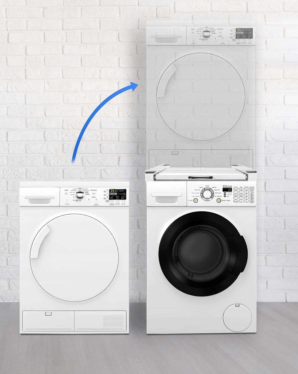 ✅Промежуточная рама, экономящая место: Промежуточная рама позволяет размещать сушильные и стиральные машины вертикально, чтобы максимально увеличить пространство. Дополнительно в комплект входят банджи-шнуры и противоскользящие коврики для обеспечения устойчивости промежуточной рамы при вертикальном монтаже устройств.