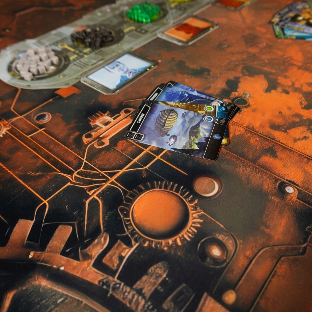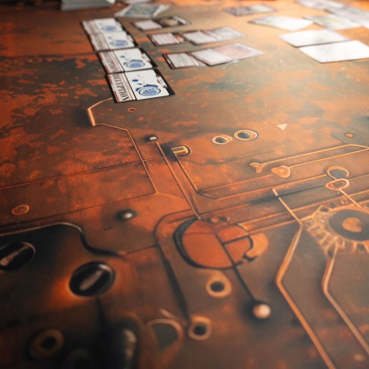 Уникальный спарившийся коврик с промышленным образцом старого оборудования. Идеально подходит для карт, доски и RPGS. Размеры 120x80 см обеспечивают большое игровое пространство, а прорезиненная ткань с нерешительным дном гарантирует долговечность и стабильность. Обновляйте свои игры с уникальным, атмосферным дизайном!