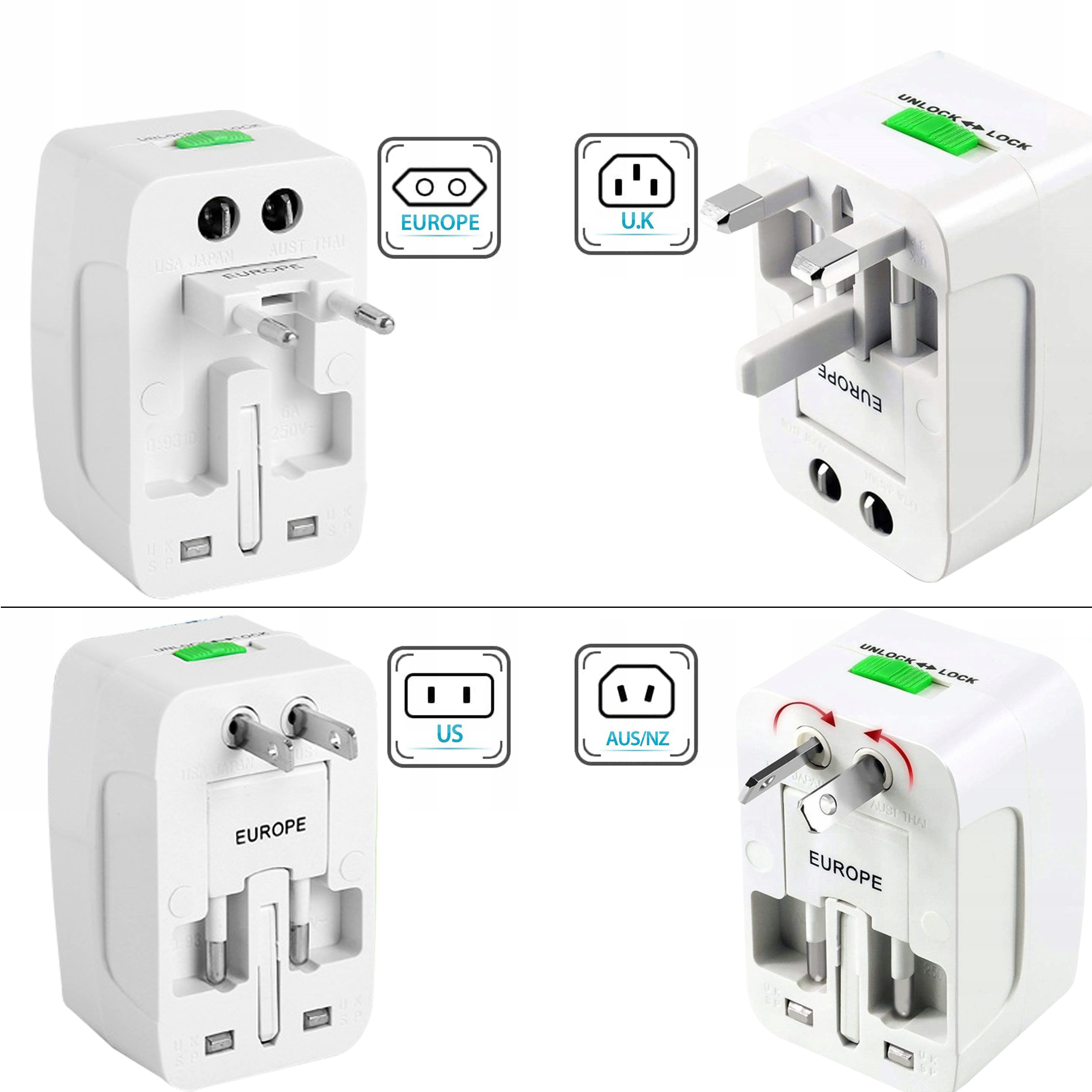 Uniwersalna Przejściówka ADAPTER DO GNIAZDKA USA UK EU AUST WTYCZKA z USB