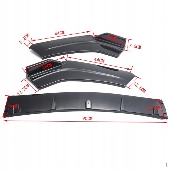 Набор состоит из трех частей, что позволяет точно подогнать дополнение практически к любому автомобилю. Он подходит для большинства моделей автомобилей, а точные размеры можно проверить в галерее товаров. Мы гарантируем очень высокое качество изготовления, которое оправдает ожидания даже самых требовательных клиентов.