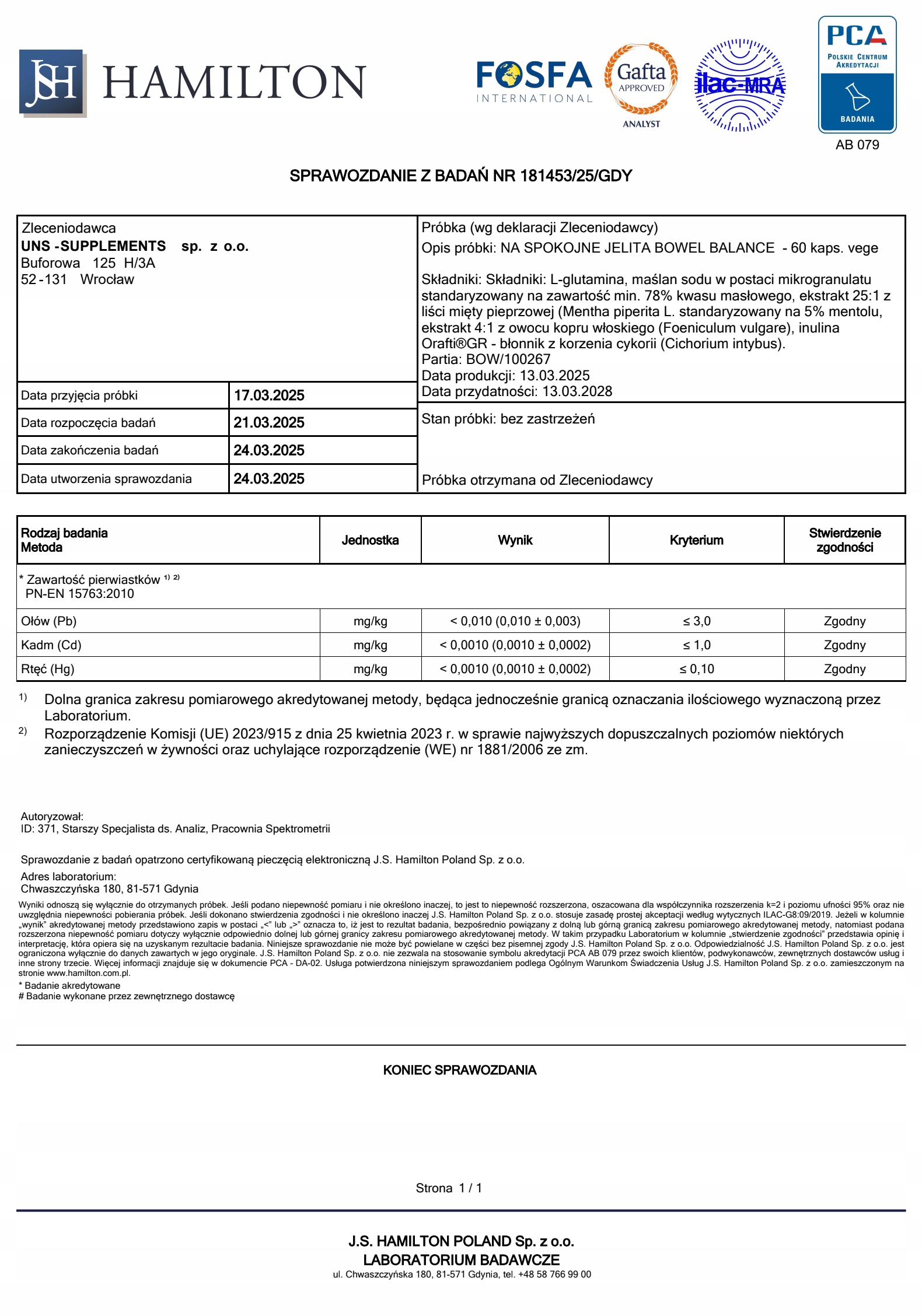 ✅Лабораторные исследования: независимые тесты. Продукт был протестирован независимой лабораторией J.S. Hamilton.