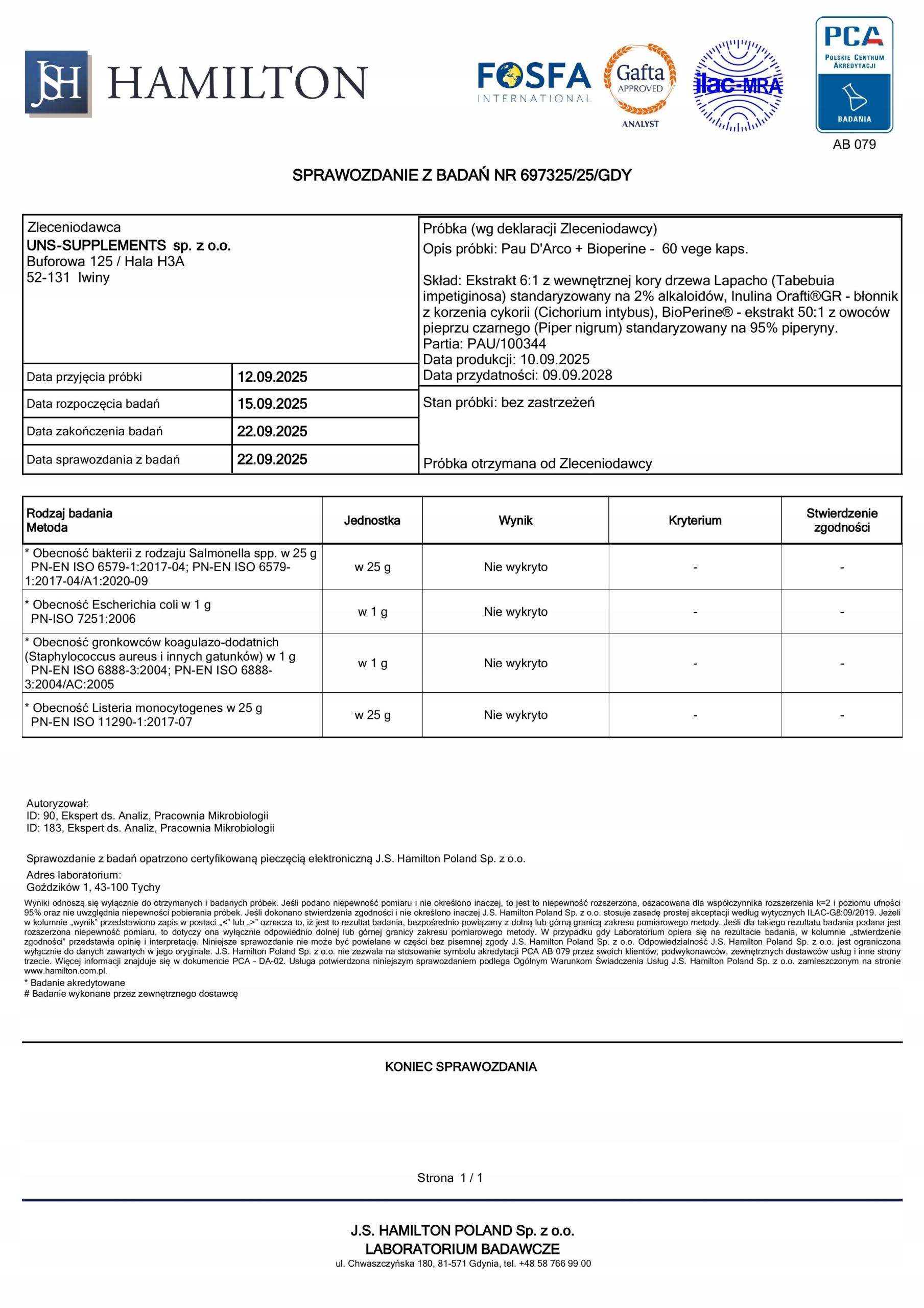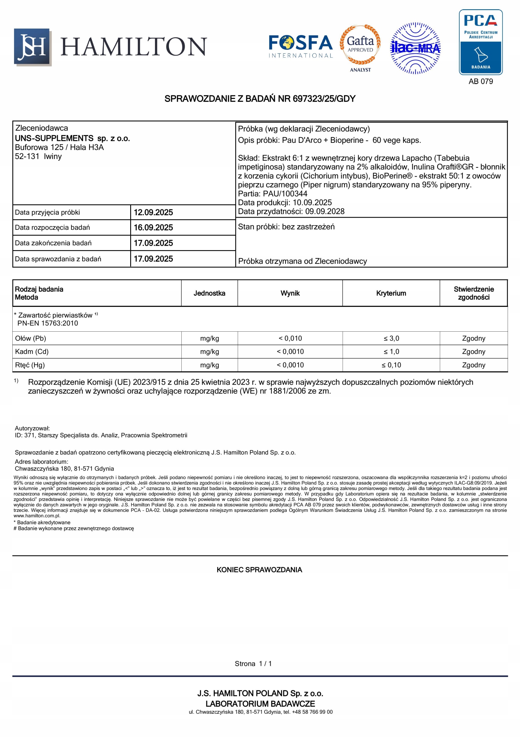 UNS Pau Darco + Bioperine содержит ингредиенты, которые: