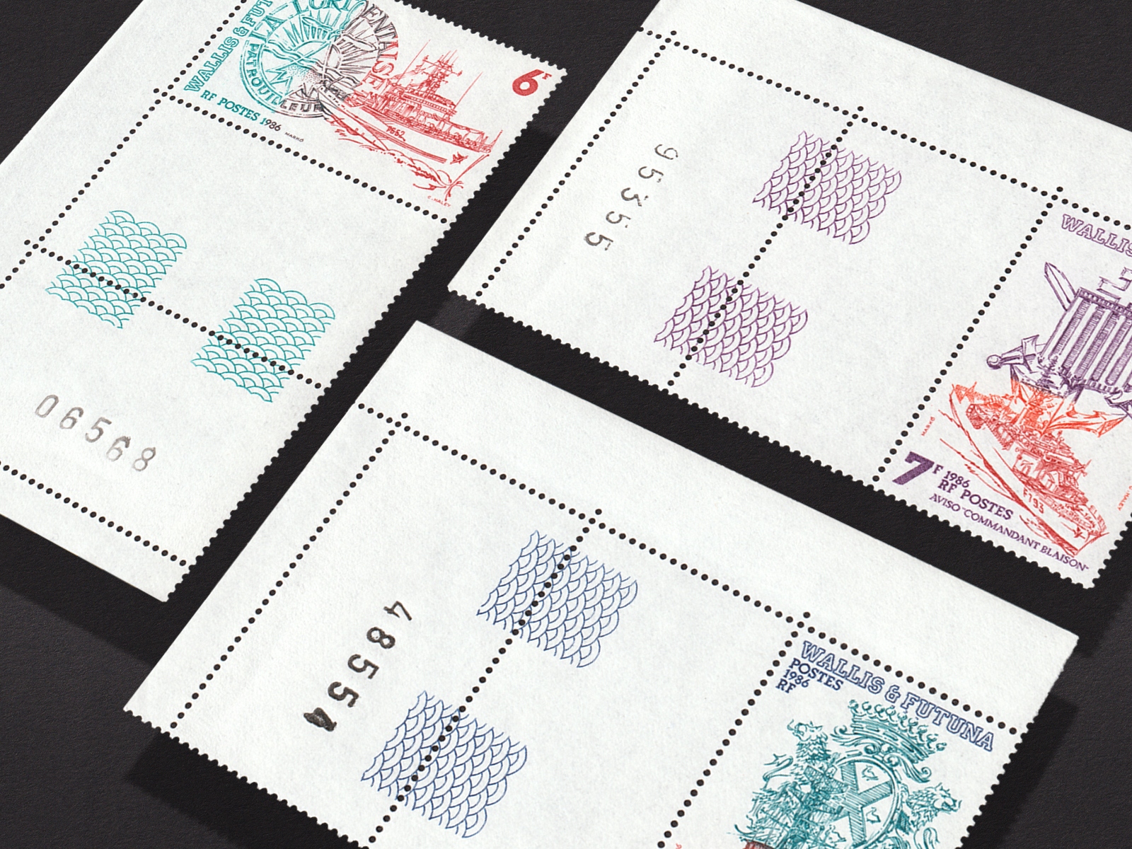 3 памятные почтовые марки (полная серия с узаконивающими полями листа), выпущенные на островах Вале и Футуна в 1986 году.