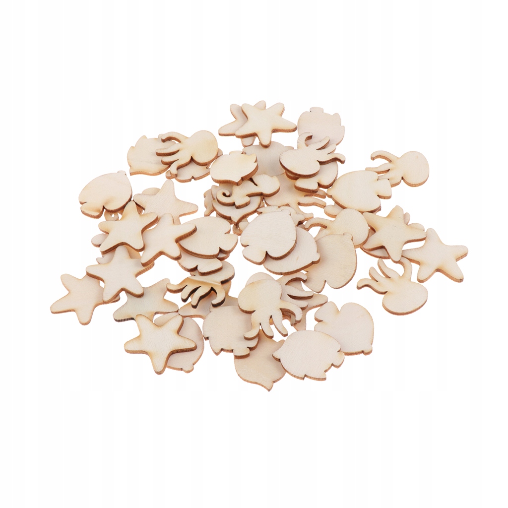 100 кусочков серии морских организмов смешанные формы кусочки натурального дерева с превосходной техникой резки и изысканными узорами резьбы.