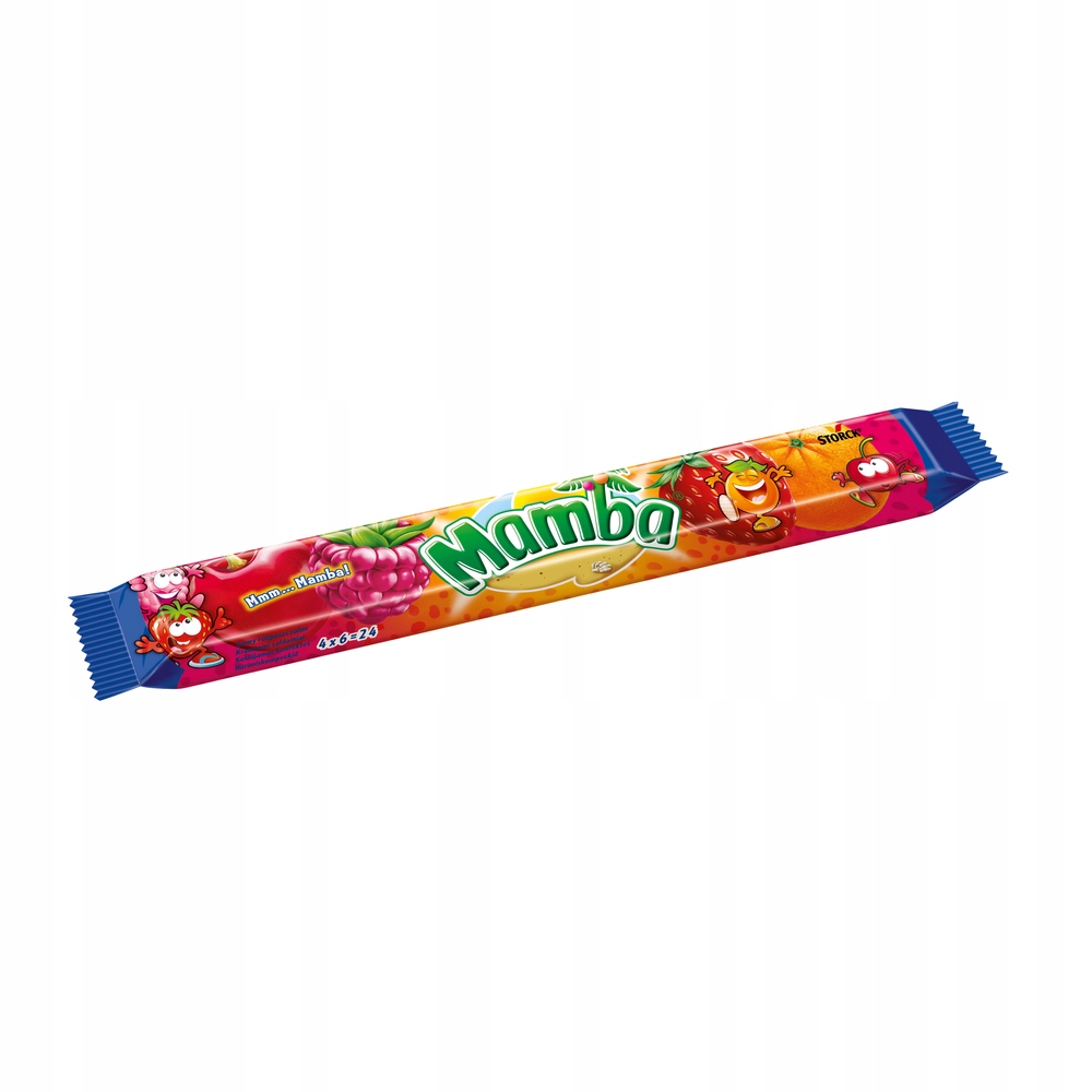 Мамба — это растворимая фруктовая жевательная резинка с четырьмя восхитительными вкусами: клубника, малина, апельсин и вишня.