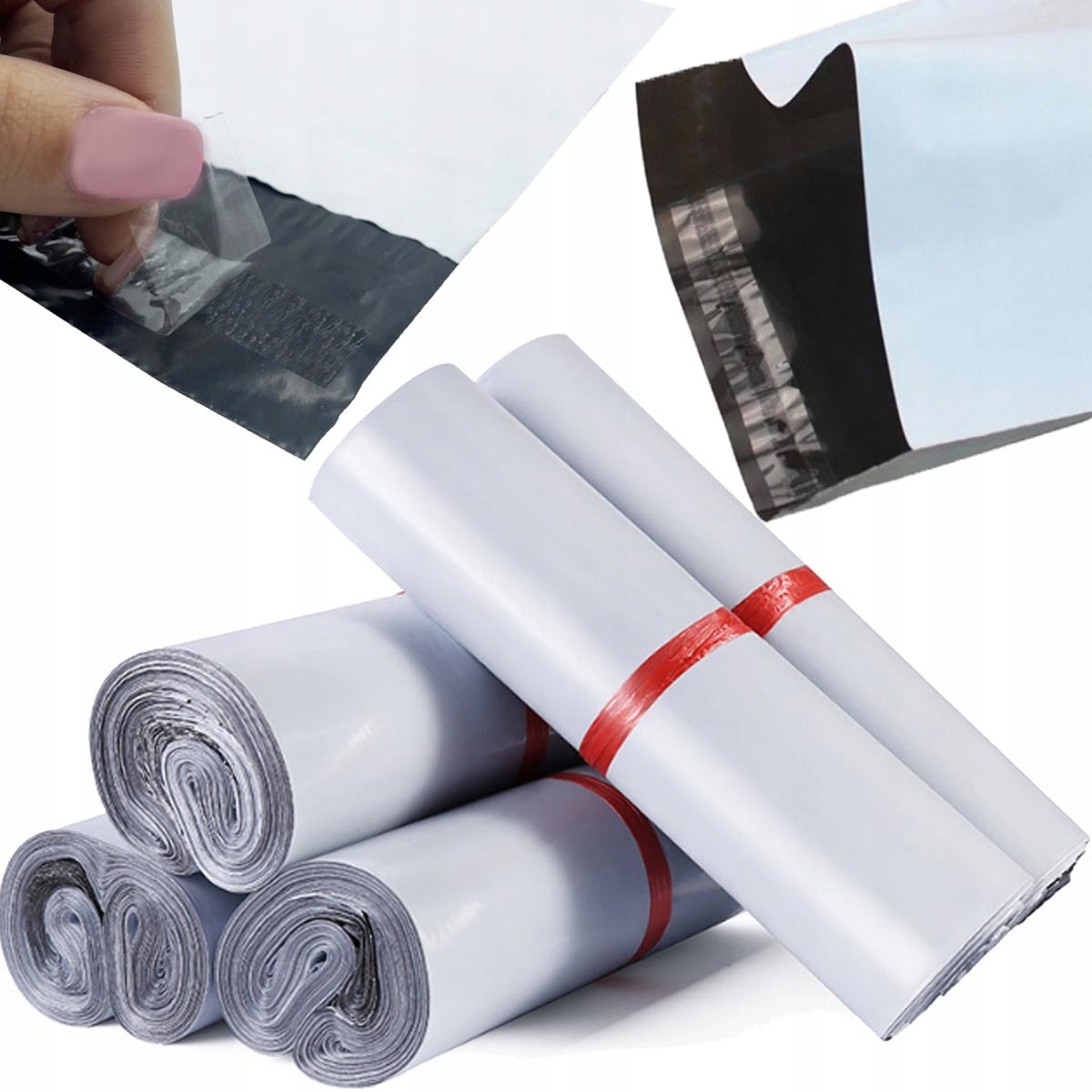 Очень прочные фольгированные пакеты для курьера в коллективных упаковках по 50 штук.