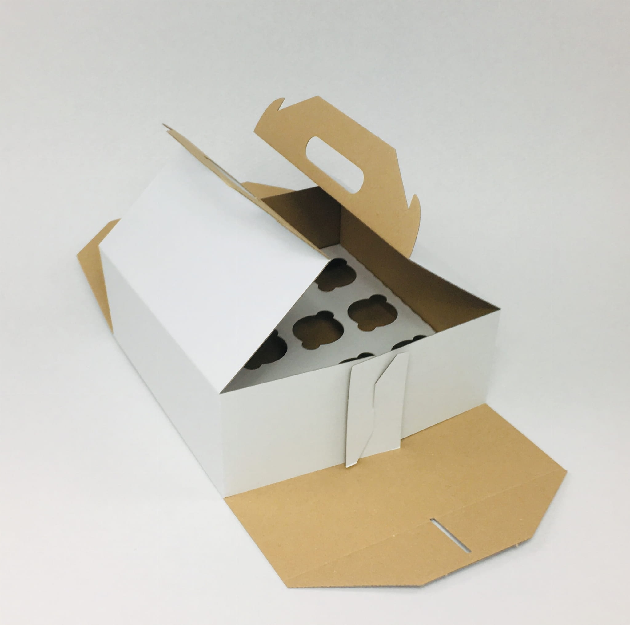 ✔️Упаковка маффинов из гофрированного картона, отбеленная с одной стороны. Жесткий и прочный. Удобная ручка облегчает переноску.