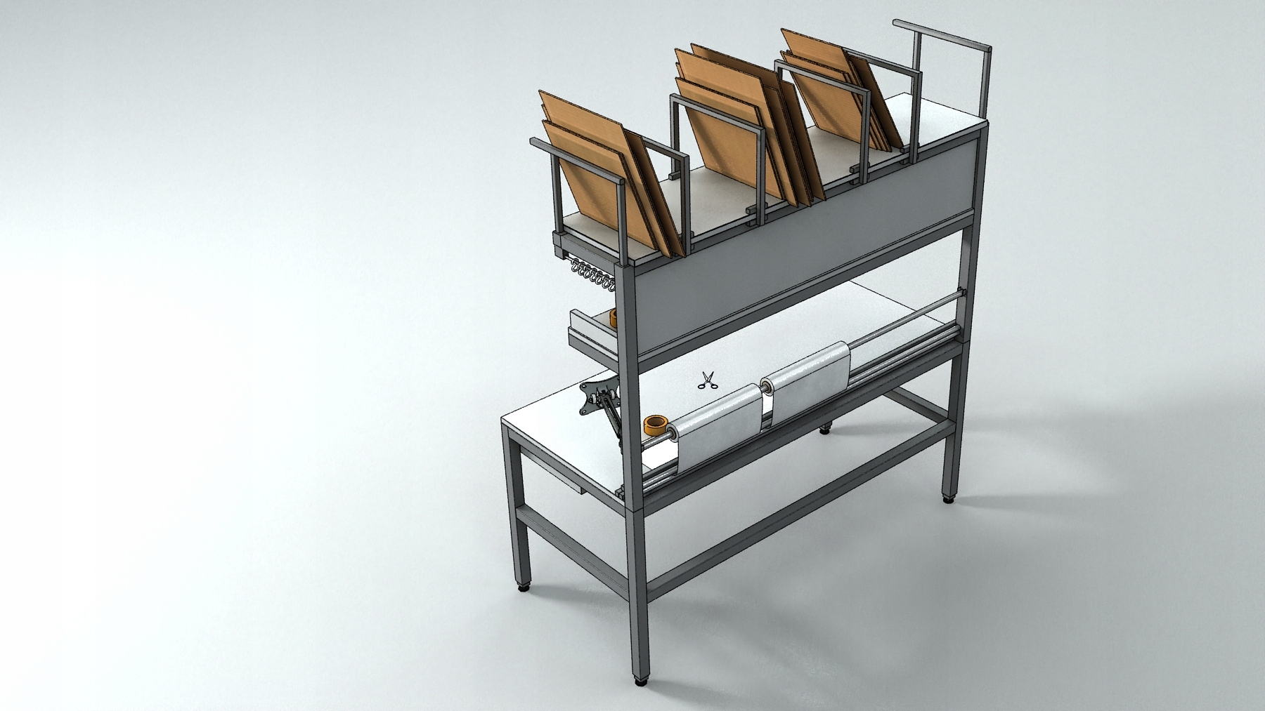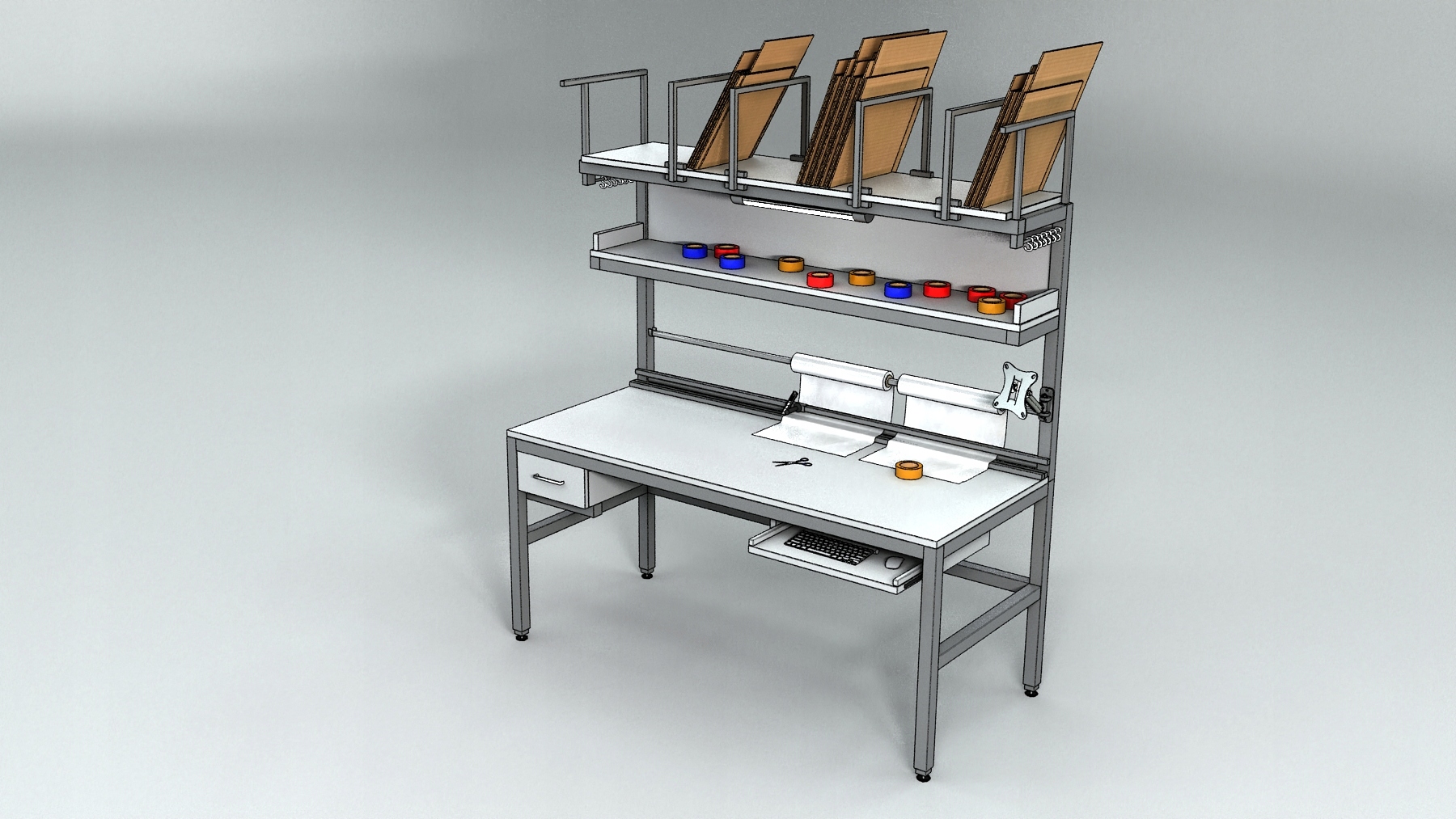 Высококачественный верстак для упаковки посылок из металлических профилей, сваренных в устойчивую форму.