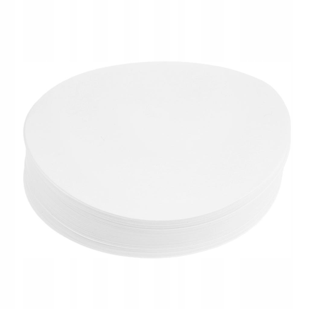 В упаковке 100 шт. беззольной лабораторной фильтровальной бумаги для количественного анализа, белого цвета, 9 см.