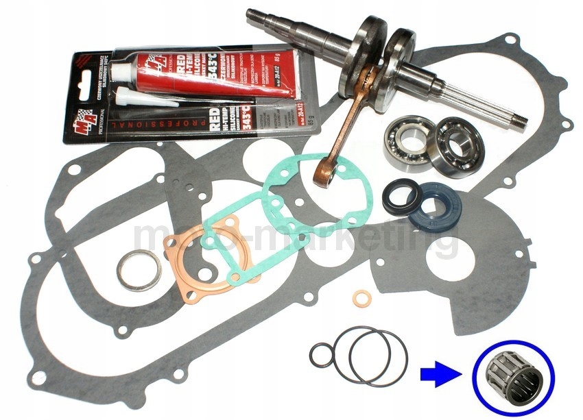 В комплект входят, среди прочего: коленчатый вал, подшипники вала (2 шт.), сальники (2 шт.),