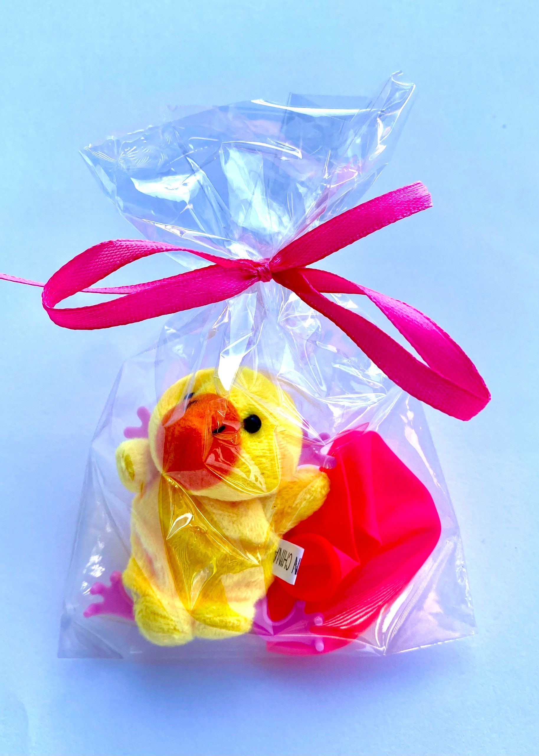 Подарок-спасибо упакован в целлофановую фольгу и содержит забавную пальчиковую куклу, лягушку и воздушный шарик. Все это перевязывается лентой произвольного или такого же цвета в зависимости от наличия деталей 🤩