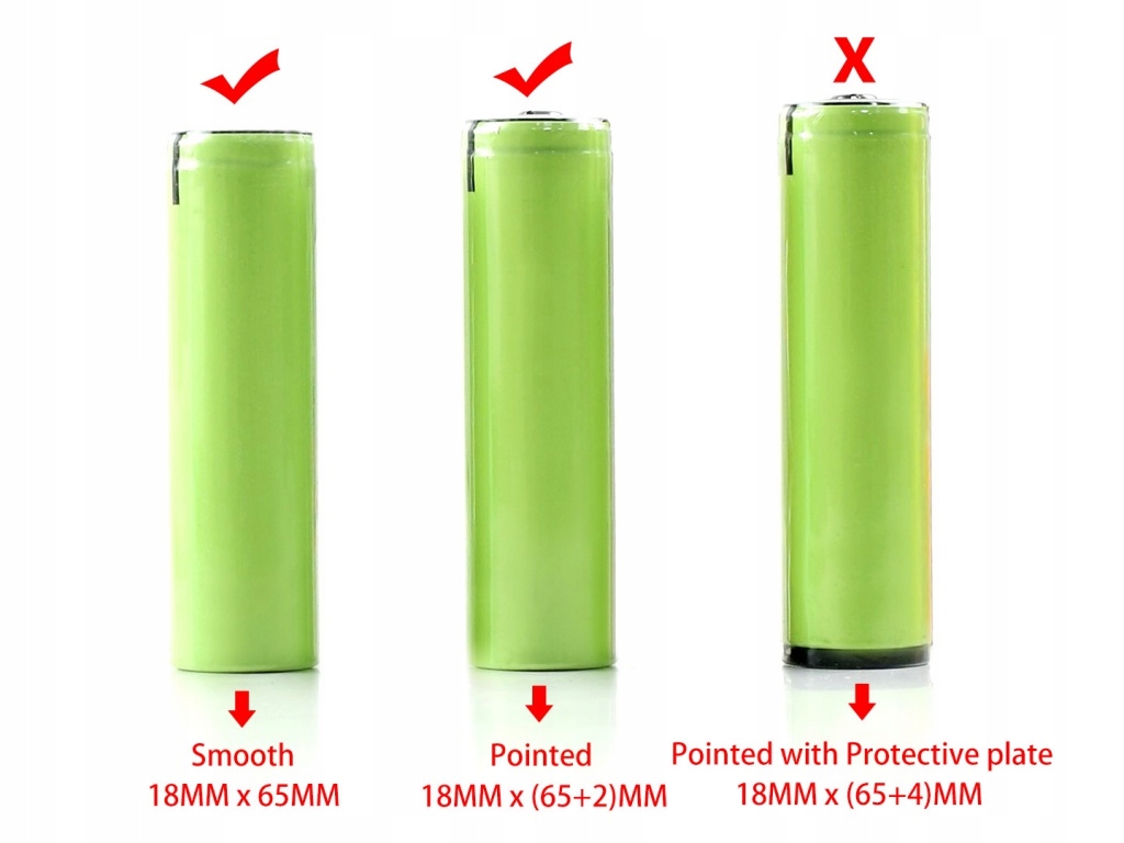 - Длина батареи ДОЛЖНА быть менее 67 мм, некоторые батареи с защитной пластиной НЕ поддерживаются. < /ul>