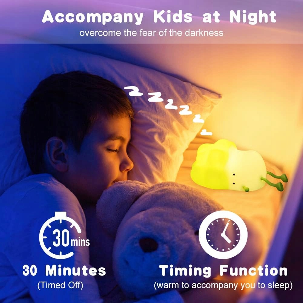 Легкий контроль - ночная лампа для детей очень прост в использовании. Просто нажмите кнопку питания внизу, чтобы включить ее, а затем нажмите, нажмите или заместите лампу, чтобы изменить яркости. Существует также 30-минутный режим вычета. После настройки этого режима лампа будет выключаться автоматически через 30 минут. Вам не нужно беспокоиться, что ребенок боится тьмы перед сном.