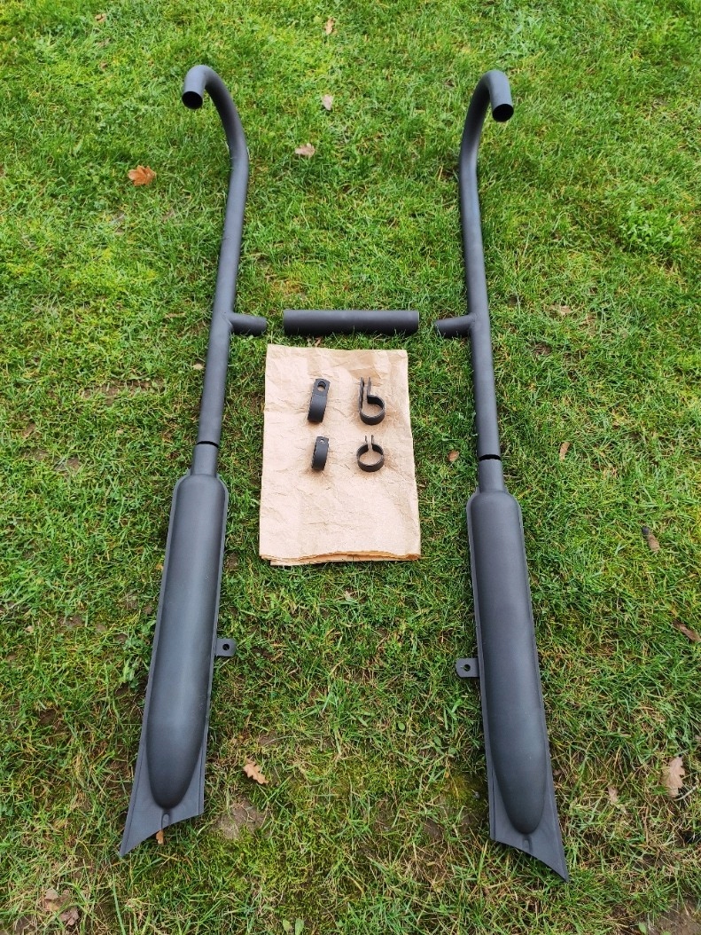 Полная, покрашенная в черный матовый цвет, выхлопная система для Урал с креплением и подключением.