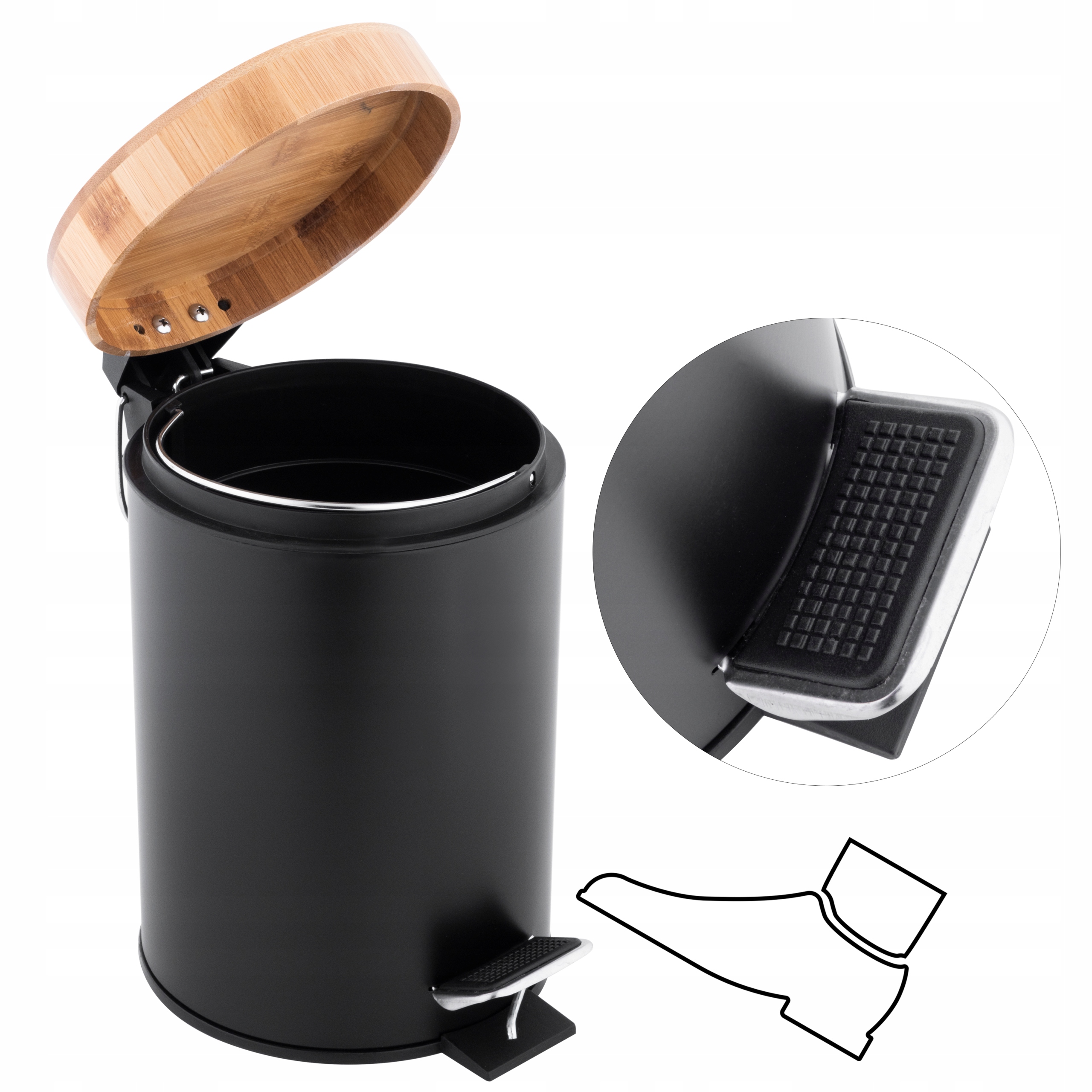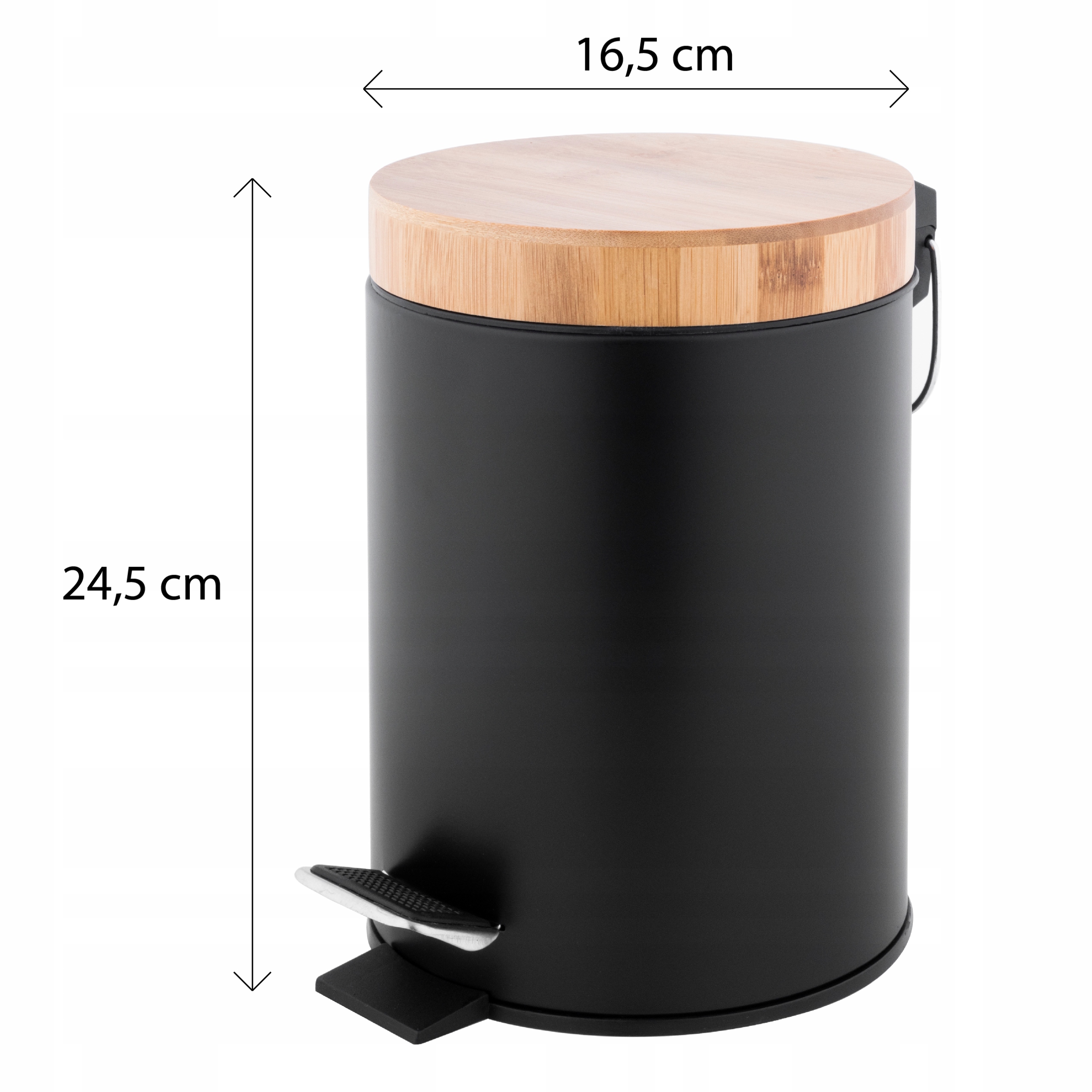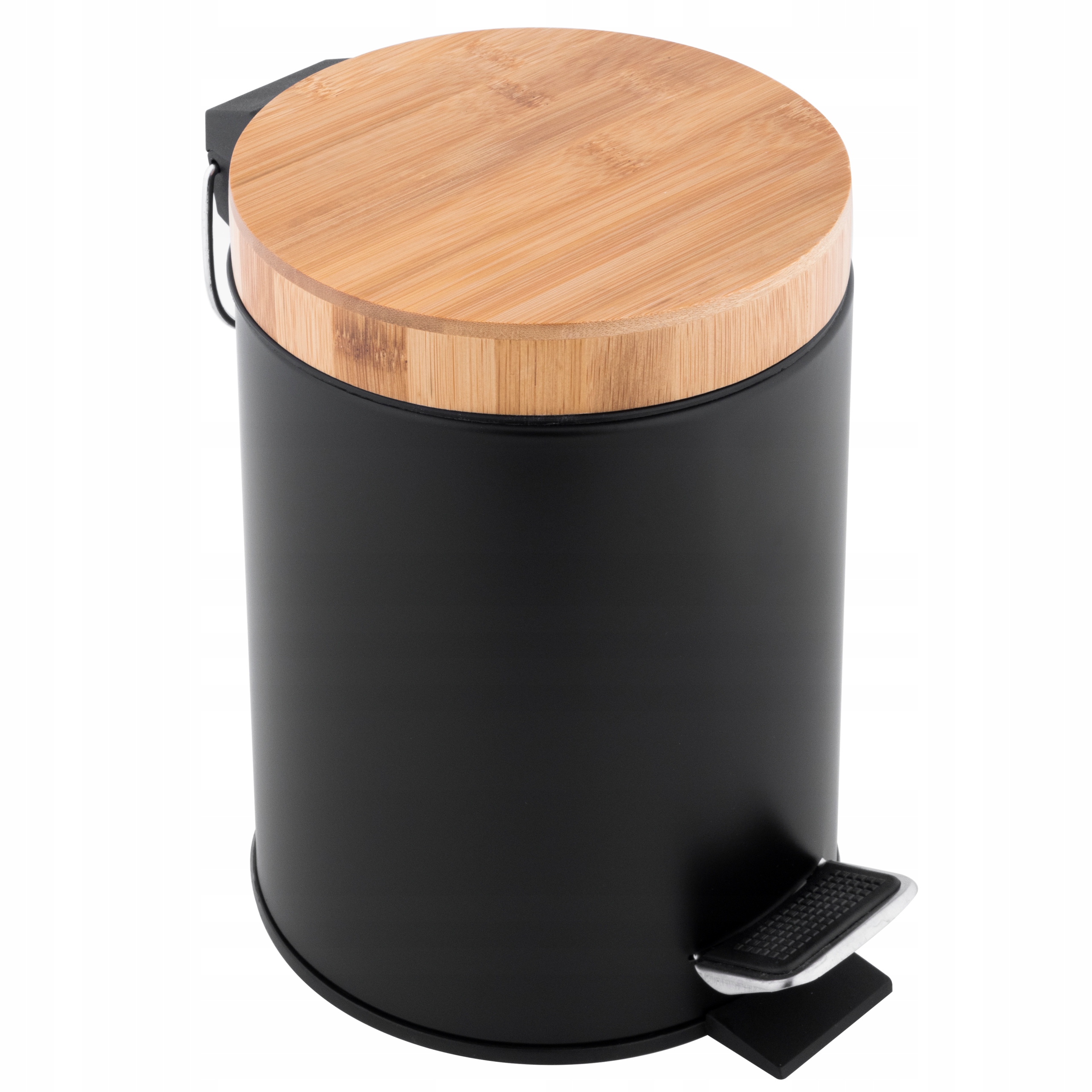 Корзина для ванной комнаты изготовлена из стали с порошковым покрытием и натурального бамбукового дерева. Контейнер с идеально гладкой матовой поверхностью.
