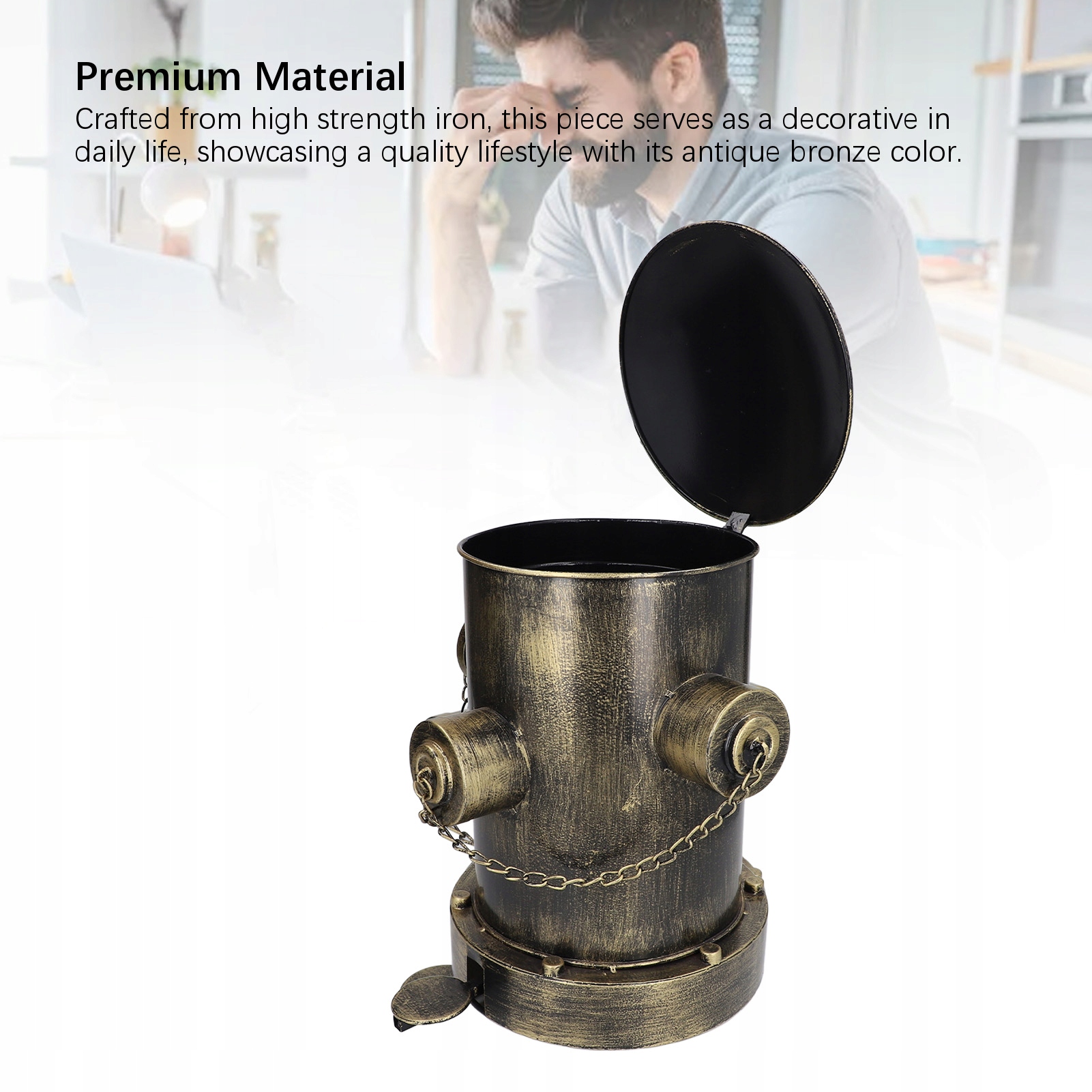2. Универсальное использование: Контейнер для мусора с гидрантом практичен в качестве контейнера для мусора или декоративного украшения, его можно легко адаптировать как к полу, так и к столешнице.