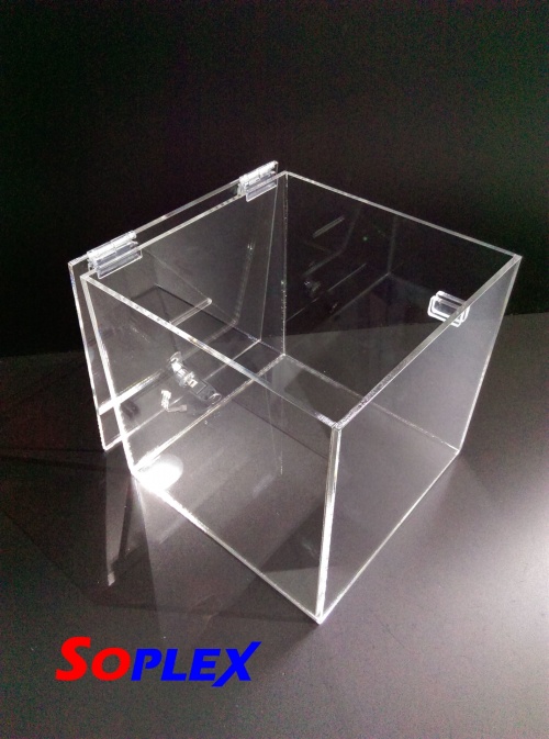 Копилка из бесцветного оргстекла (пмма-полиметилметакрилата) с толщиной стенок 5мм и размерами (ширина, глубина и высота):