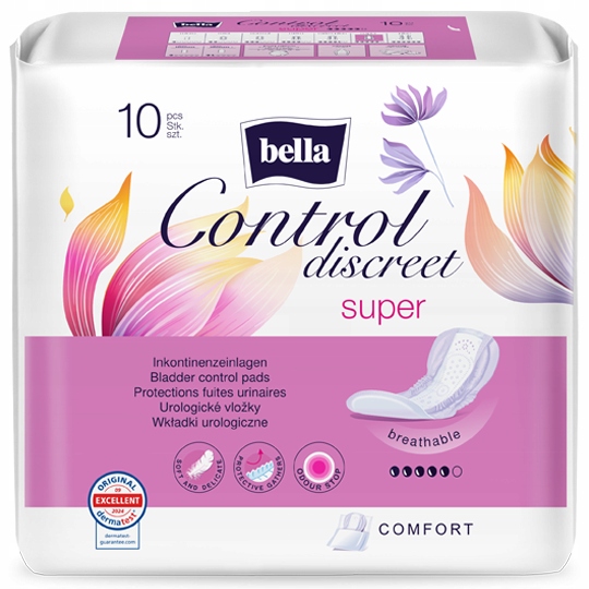 Bella Control Discreet — линейка дышащих урологических прокладок, предназначенных для женщин с чувствительным мочевым пузырем и легким недержанием мочи.