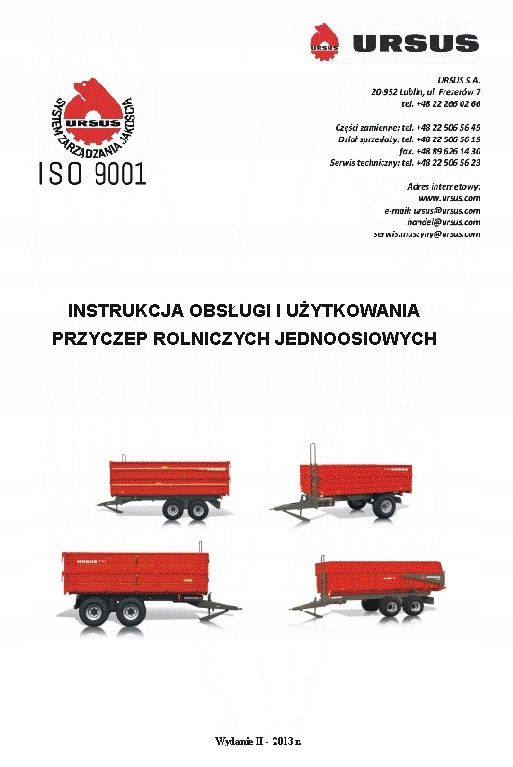 Ursus причепи - самоскиди сільськогосподарські одновісні - інструкція з експлуатації