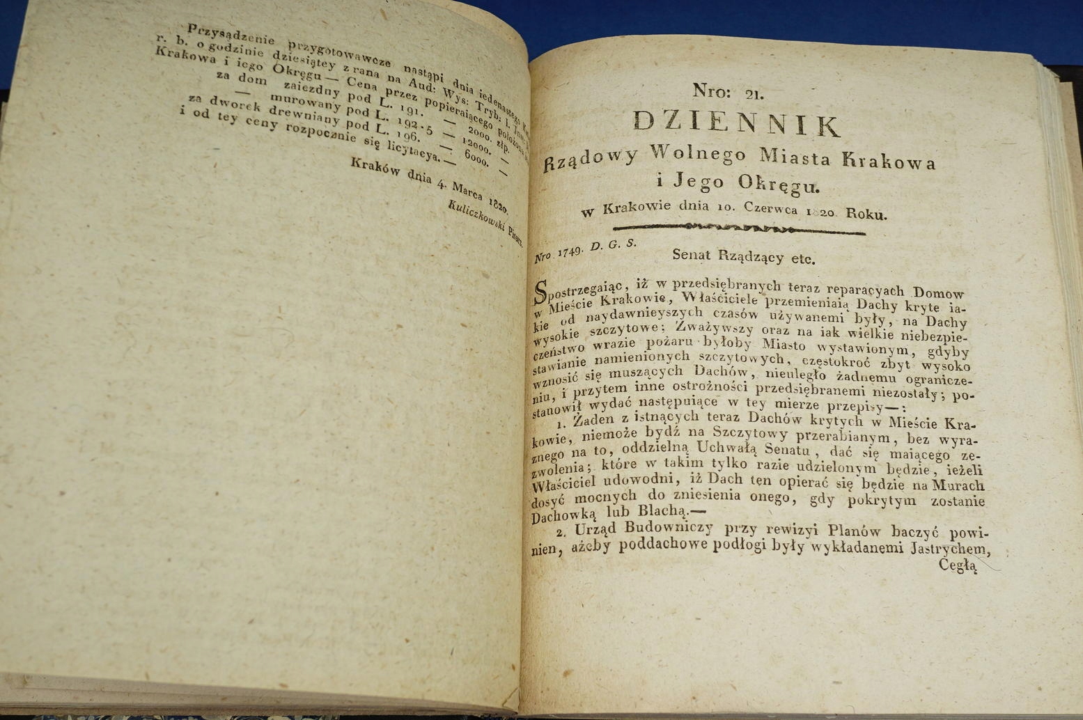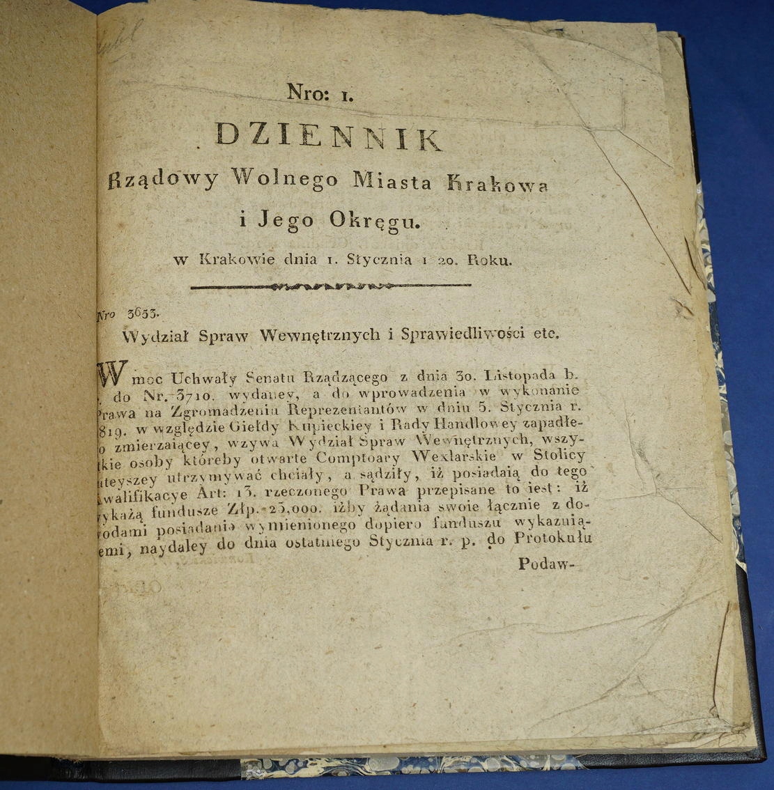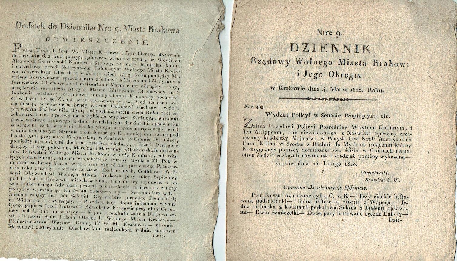 ПРАВИТЕЛЬСТВЕННЫЙ ЖУРНАЛ В.М. КРАКОВ И ОКРУГ 1820 Г.