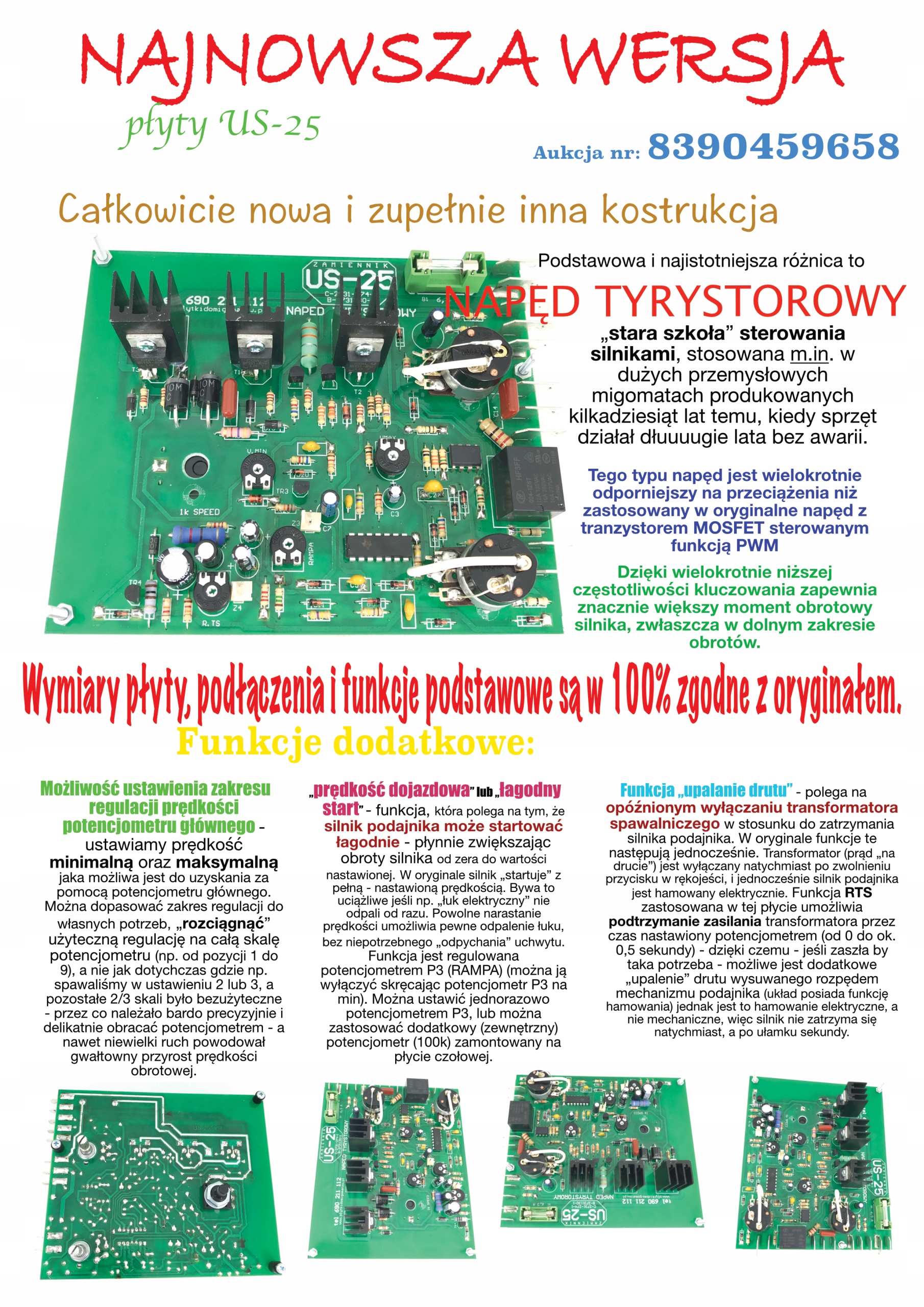 Это 100% совместимая замена платы управления US-25, используемой, среди прочего, в сварочных аппаратах