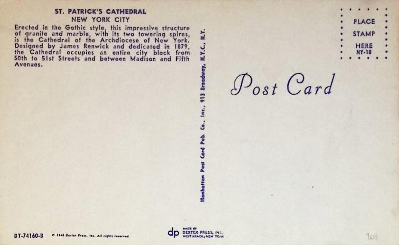 США - НЬЮ-ЙОРК - ЦЕРКОВЬ СВ. ПАТРИКА - 1964 г.
