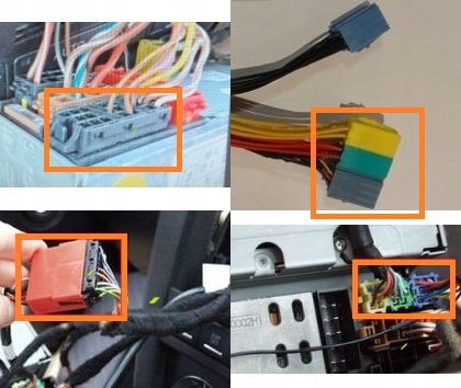 2.Отсоединить широкий разъем от магнитолы (фото1), подготовить полученный 20-контактный переходник (фото2), использовать полученный переходник как переходный (фото3), воткнуть переходник в выделенный порт магнитолы (фото 4)