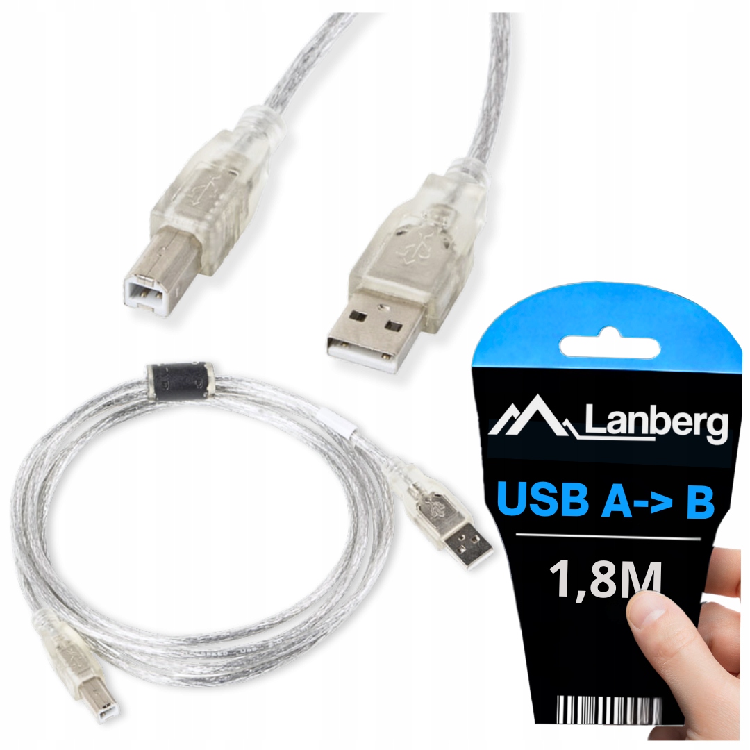 USB 2.0 ТИП A USB ТИПА B КАБЕЛЬ ДЛЯ ПРИНТЕРА ПРОЗРАЧНЫЙ LANBERG 1,8 М