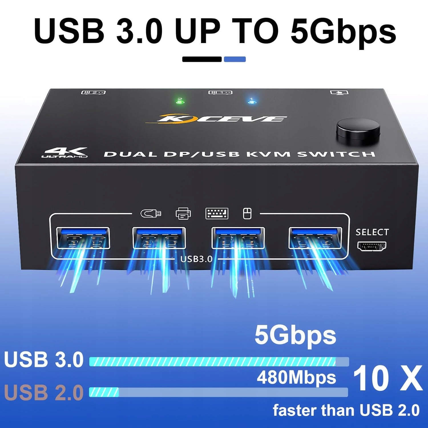 - KVM USB 3.0 Переключатель со скоростью до 5 Гбит/с - этот мониторы KVM 2 PC 2 2 работают с 4 устройствами USB 3.0 без необходимости вытащить пробку. Сохраните место на своем столе, убедитесь, что вы заказываете на рабочем столе и сделайте свою работу и жизнь проще и более эффективной. Технология USB 3.0 поддерживает скорость передачи до 5 Гбит/с, в десять раз выше, чем USB 2.0 со скоростью 480 Мбит/с, совместимая с USB 2.0/1.1