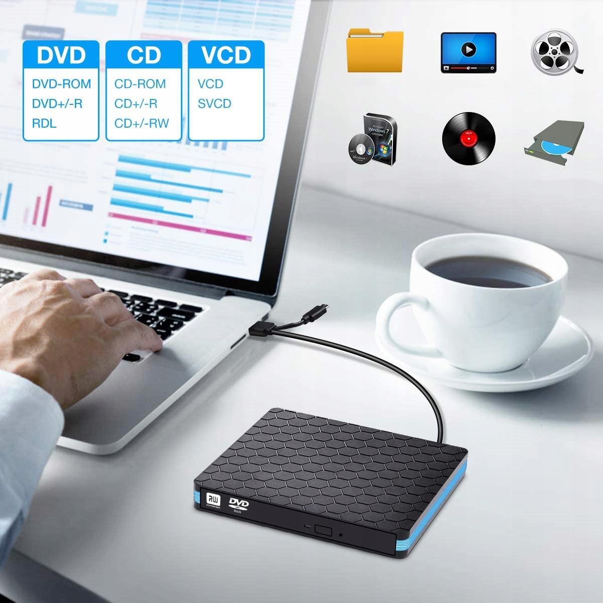Внешний DVD-привод — идеальный компаньон для MacBook/MacBook Pro/Apple MacBook Air и других компьютеров/ноутбуков/Apple с USB интерфейс или тип. Нужен ли вам интерфейс USB или Type-C, он удовлетворит ваши потребности. Костюм «два в одном» значительно повышает комфорт.