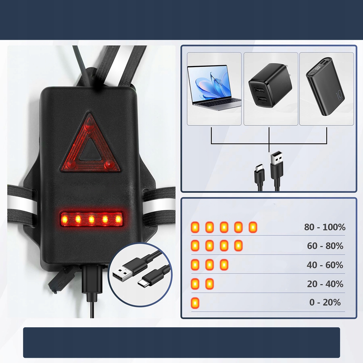 🔋Долгий срок службы батареи и возможность перезарядки. Встроенная литиевая батарея большой емкости (2000 мАч) обеспечивает многочасовое непрерывное освещение благодаря нашим перезаряжаемым ходовым огням. Просто зарядите его с помощью прилагаемого кабеля USB-C, и он станет экологически чистым выбором для всех бегунов.