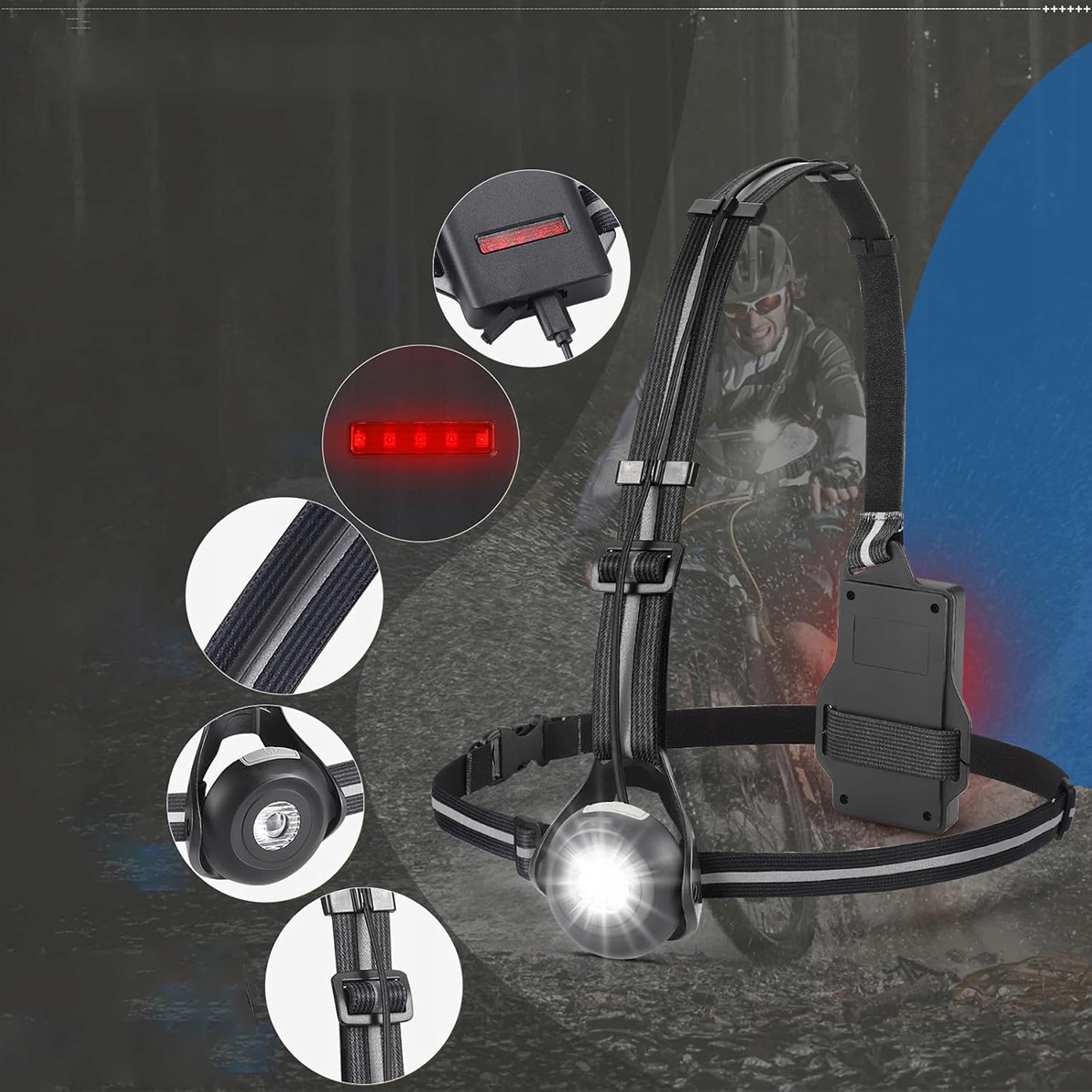 Беговой фонарь, нагрудный фонарь для пробежек, 500 люмен, заряжается через USB-C, регулируемый угол света 90°, светоотражающая полоса 360°, водонепроницаемый, регулируемый, беговой фонарь Jogger