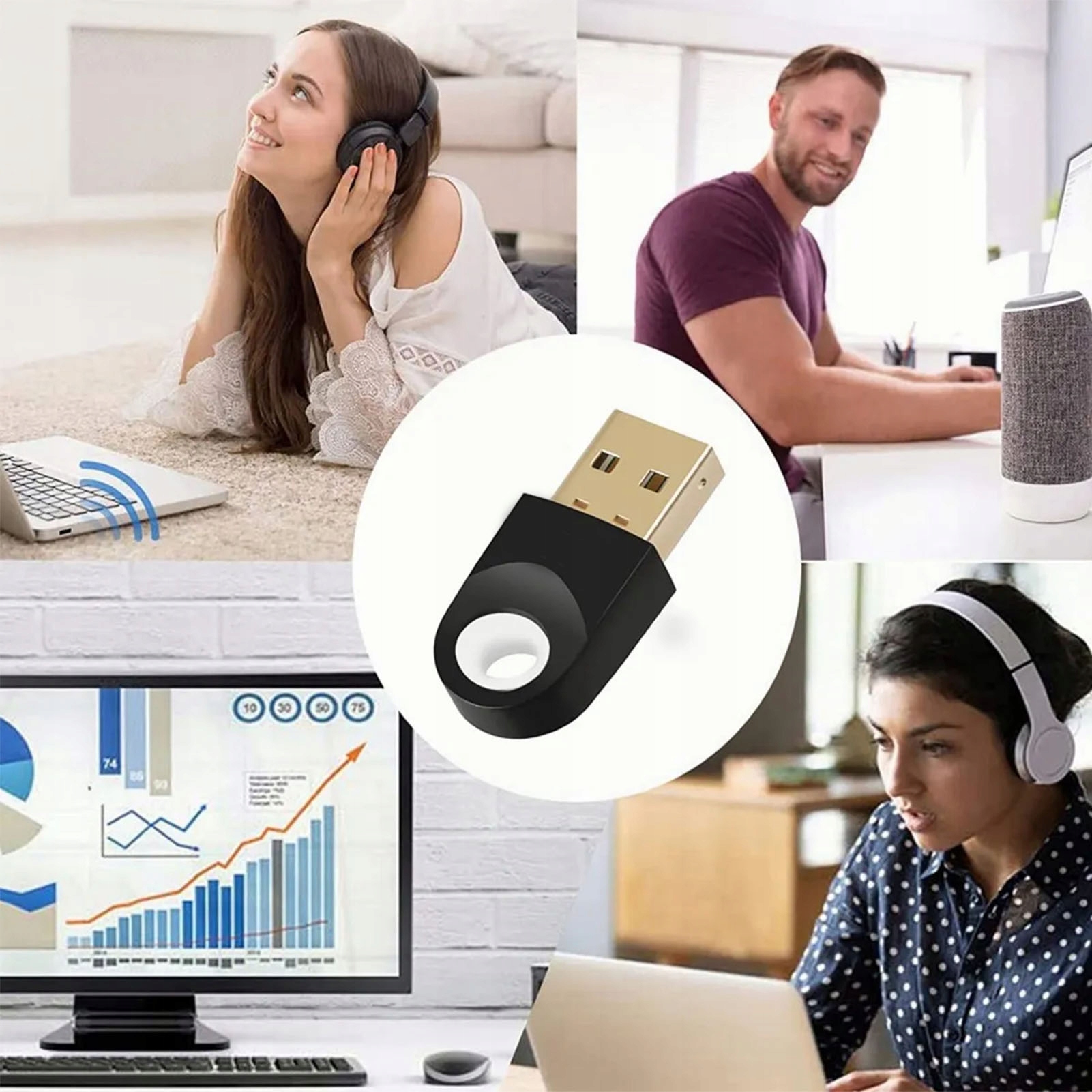 Аудиоадаптер USB Bluetooth Стабильная передача данных на ноутбук Телефон Клавиатура и мышь Принтеры Наушники Динамики
