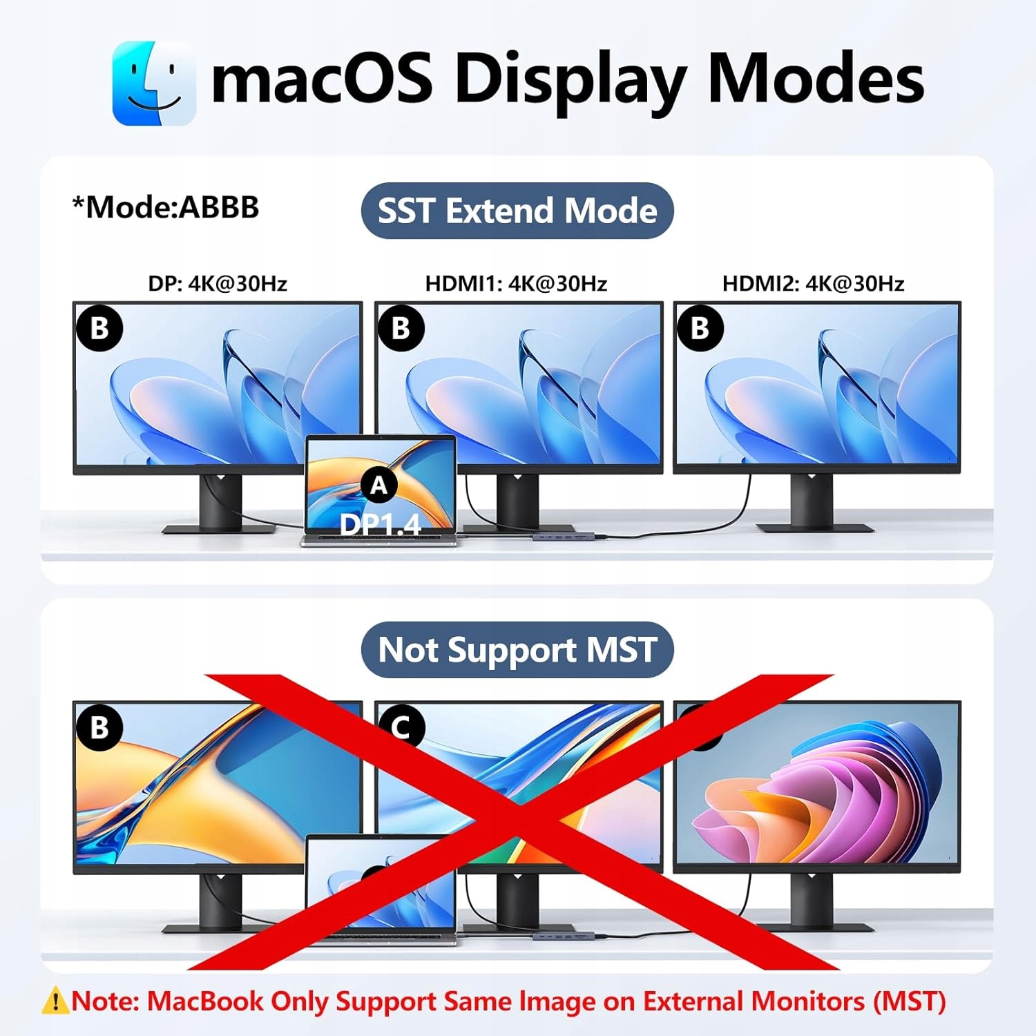 Docking Station 3 контролирует много -порт -адаптер USD C Hub расширяет рабочее пространство ноутбука с выходом 4K: поддерживает два монитора и тройные дисплеи для Windows. Используя один HDMI 1 или DisplayPort, разрешение может достигать 4K при 60 Гц, один порт HDMI 2 поддерживает до 4K при 30 Гц. Для двух мониторов выход будет 4K при 30 Гц и 2K при 60 Гц (DP 1,4). Для трех мониторов вывод составит 1080p при 60 Гц (DP 1,4). Примечание. Ноутбуки MacBook поддерживают одно и то же изображение только на внешних мониторах.
