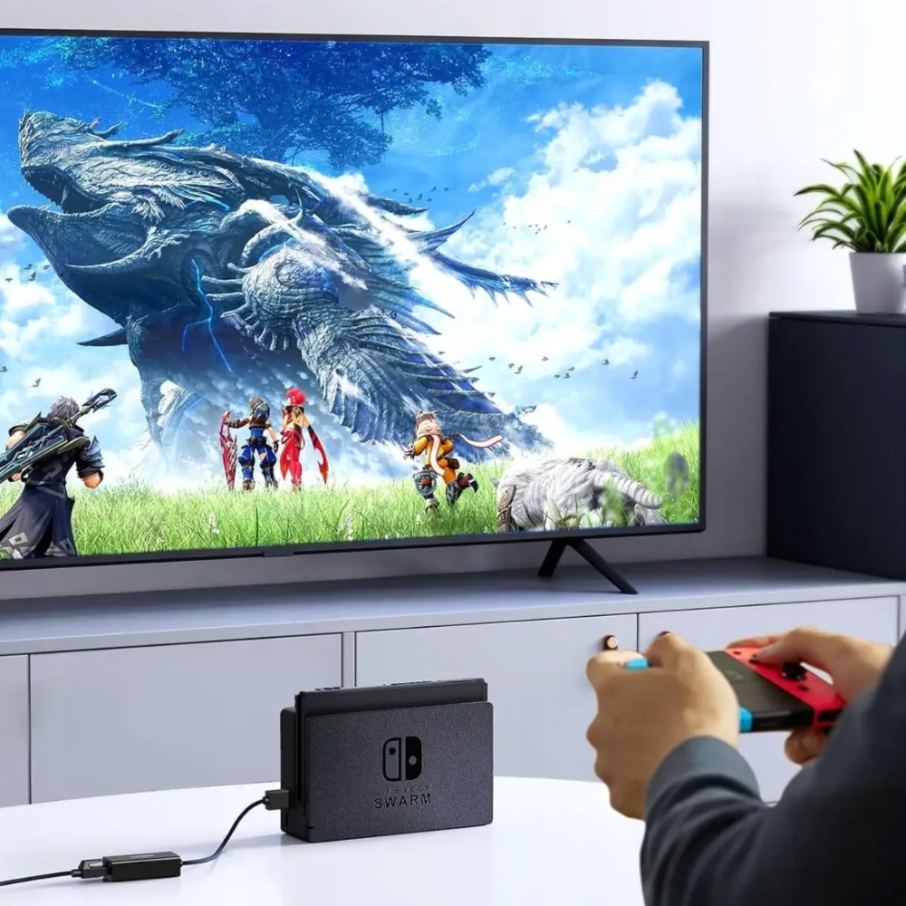 Адаптер работает с устройствами, оснащенными портом USB-C, включая ноутбуки, планшеты и некоторые смартфоны.