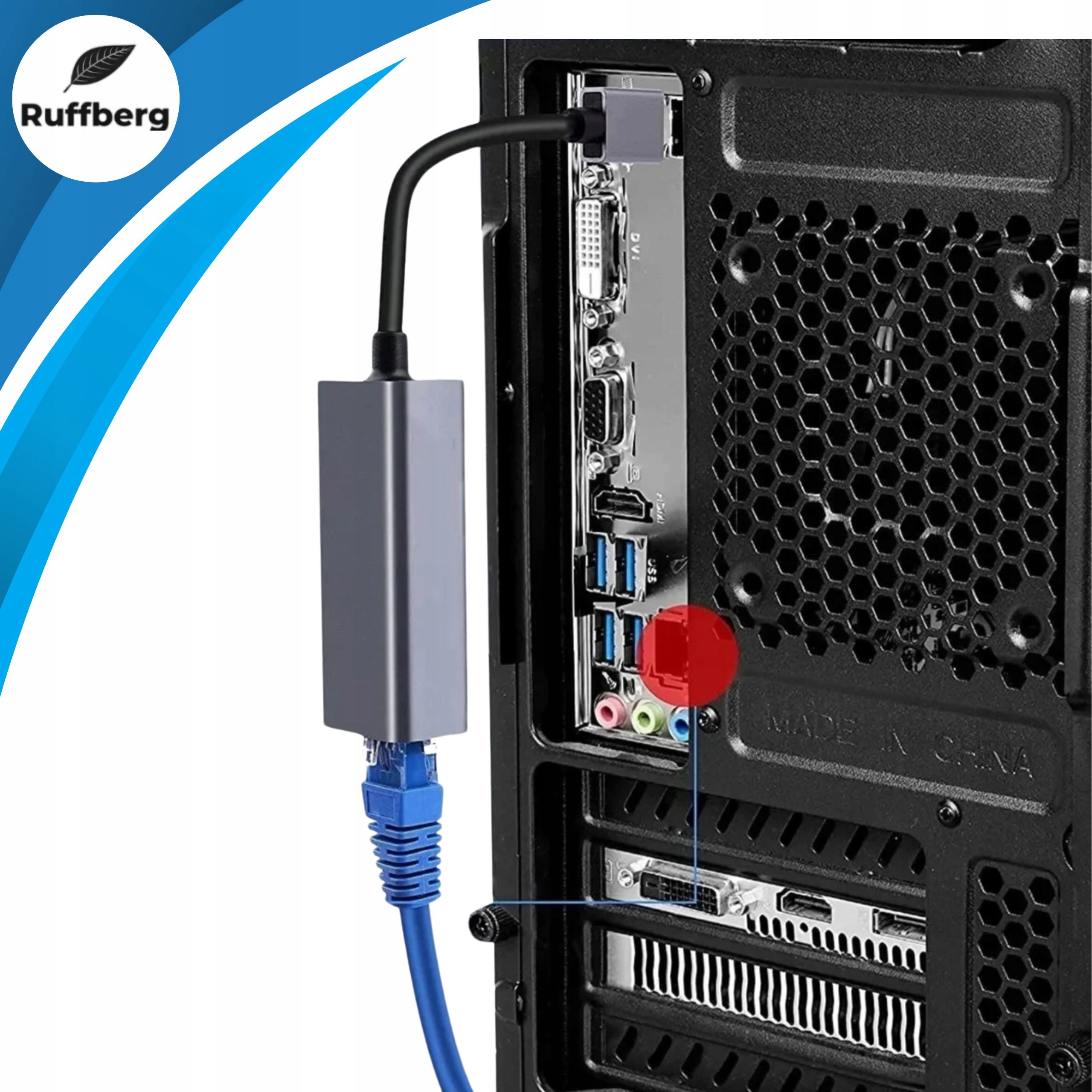 АДАПТЕР USB C НА RJ45, 1000 МБИТ/С GIGABIT ETHERNET, МОДЕЛЬ RUFFBERG AD15