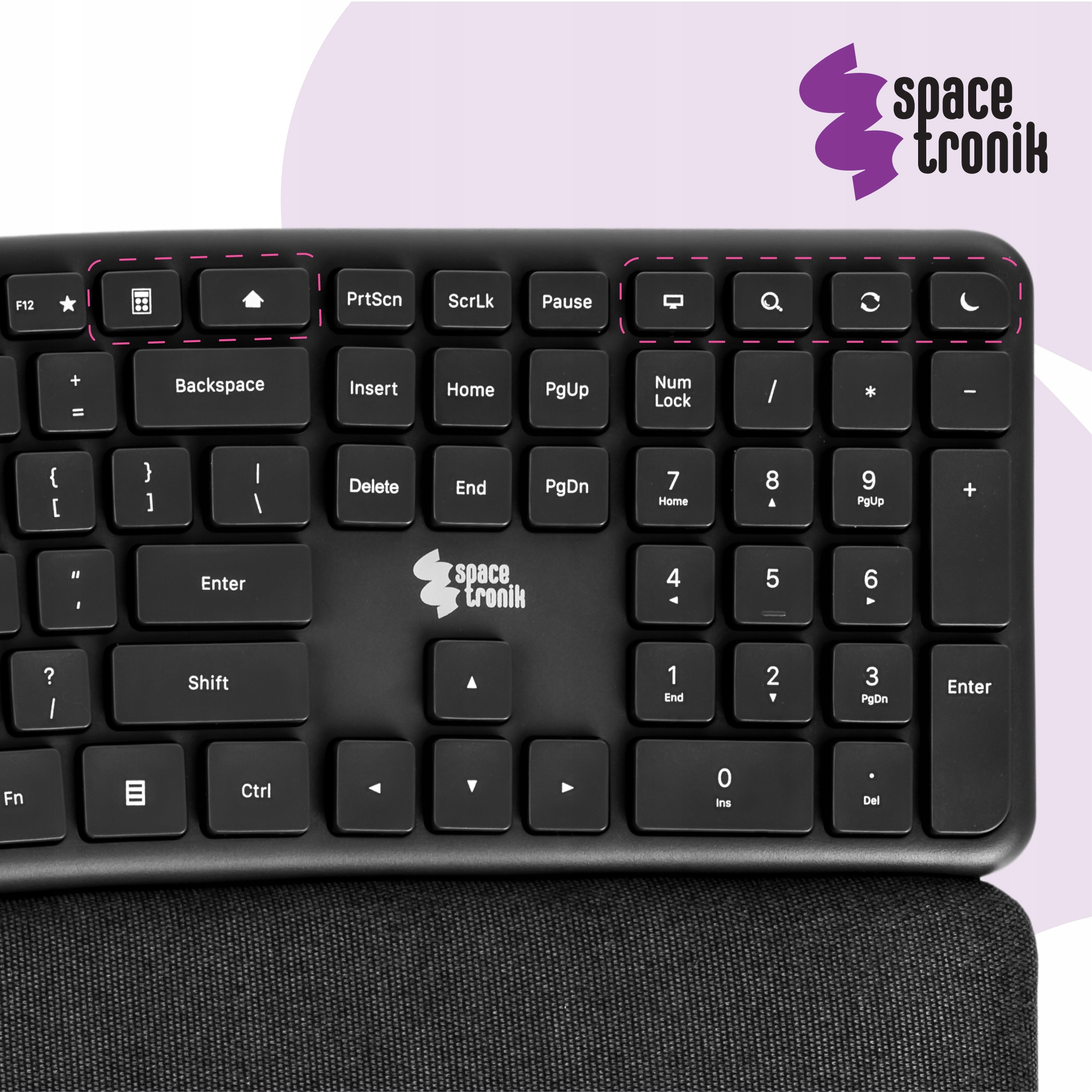 Spacetronik Keyboard, благодаря конкретной структуре, это означает, что вам не нужно сгибать запястья все время . более удобное письмо