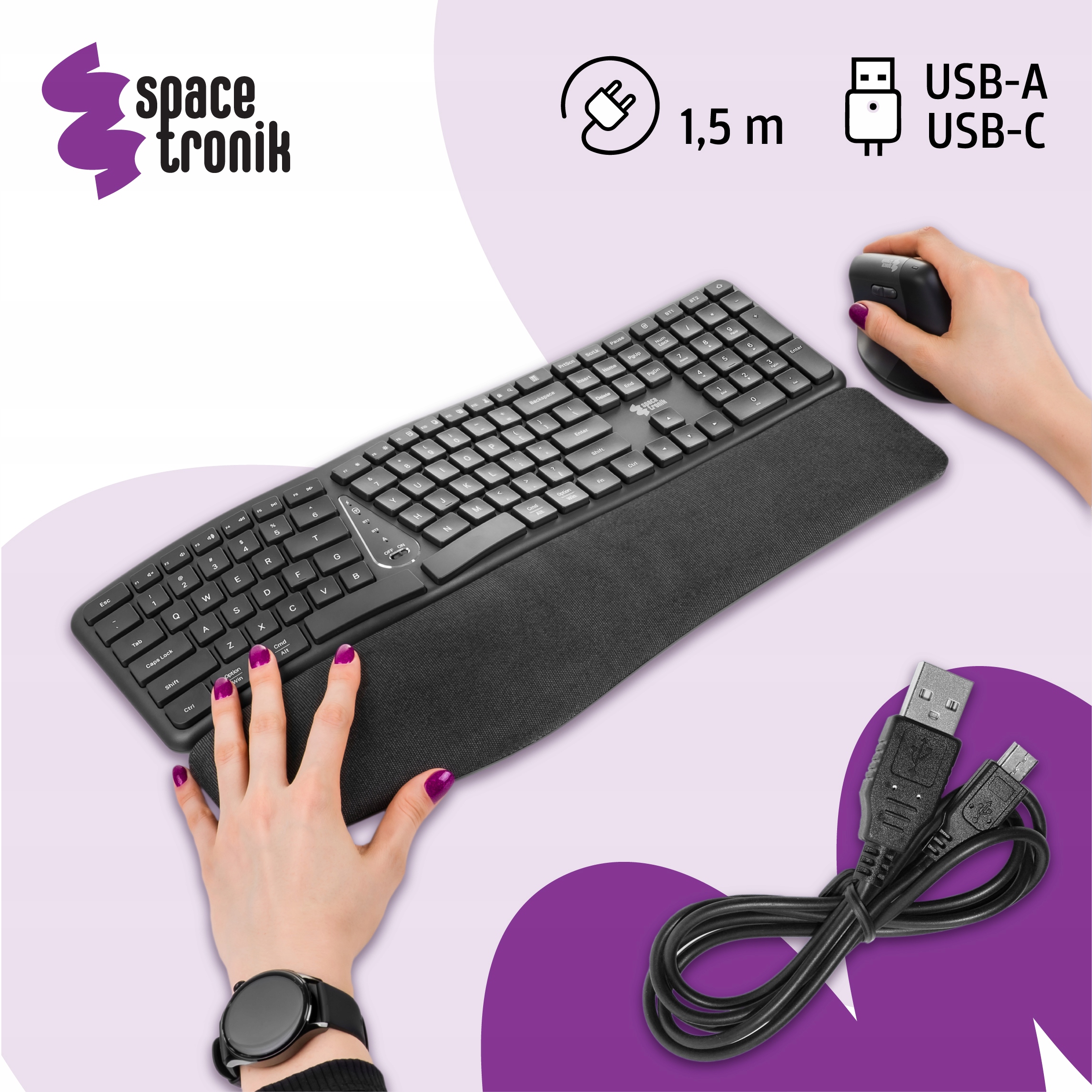 USB -эргономичная клавиатура 1,5 м Qwerty Spacetronik Membrane