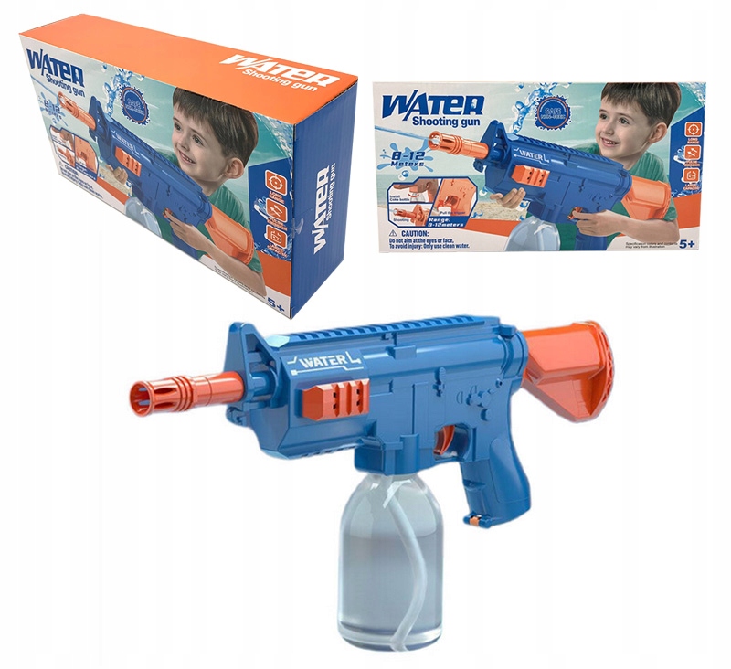 - Содержимое комплекта: водяной пистолет, навинчивающийся резервуар для воды, аккумулятор 3,7 В, USB-кабель для зарядки, руководство пользователя