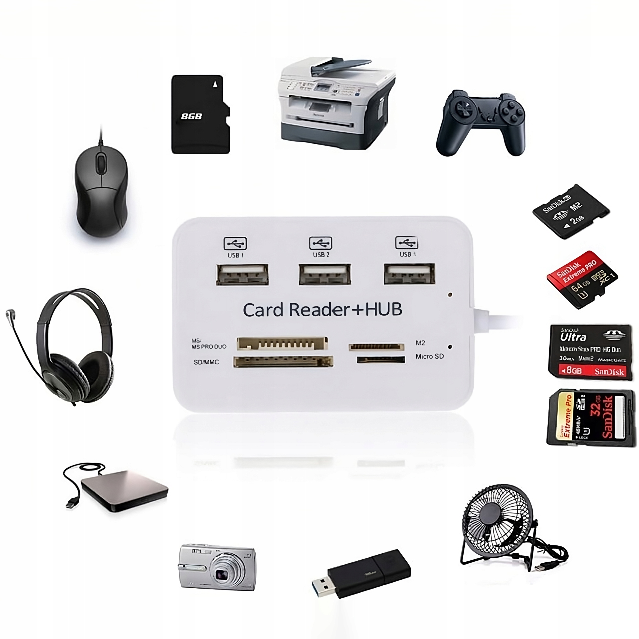 Отныне вам больше не придется отключать другое оборудование, если вы хотите подключить новое устройство к USB! Или вам не хватает места для карт SD и MMC, MS, TF, M2.