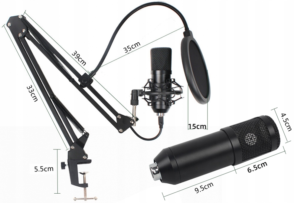 USB-конденсаторний студійний мікрофон на штанзі з мембраною POP-фільтра