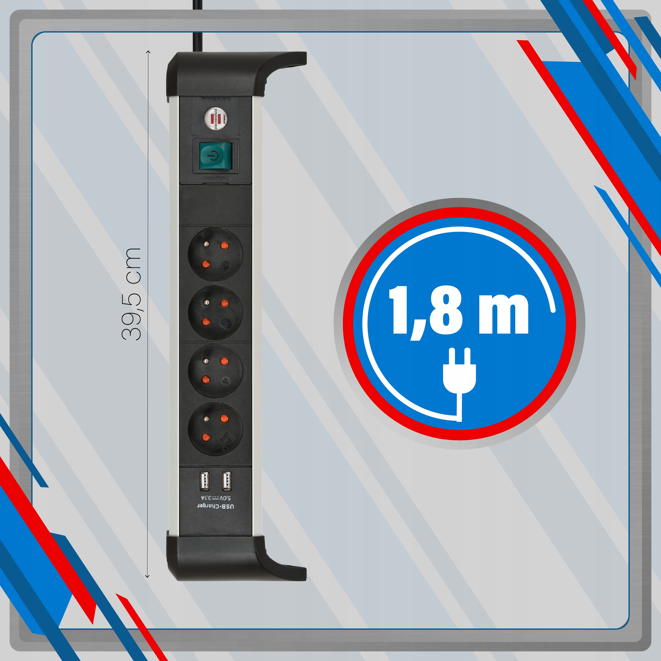 Удлинитель Alu-Office-Lineот известного немецкого бренда Brennenstuhl — отличный источник питания >. Он впечатляет как качеством изготовления, так и уровнем безопасности. Благодаря продуманной конструкции вы можете питать до 6 устройств одновременно. Он также очень прочный и долговечный. Кроме того, он отличается необычайным комфортом использования. Все это означает, что он непременно оправдает все возложенные на него ожидания!
