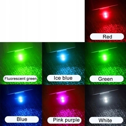 светлый цвет: 7 цветов (ледяной блхкит, зеленый, синий, розовый фиолетовый, флуоресцентный зеленый, красный, белый)